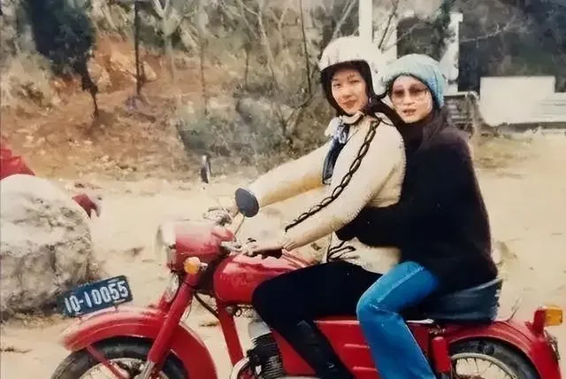 照片里这俩人一前一后,穿着羊毛衫和牛仔裤,戴着摩托头盔,横坐在摩托上,姿势还挺洋气,这情景在当年就是青春美好的招牌,一台摩托能让姑娘们羡慕好久,谁家要是有台这样的大红摩托,必定成了附近亲戚朋友家的“拍照神器”,以前照相馆里摆盆花都不如能靠一辆摩托拍一张风风光光的实在,骑过去绕两圈,谁看了不说一句,真有面子。