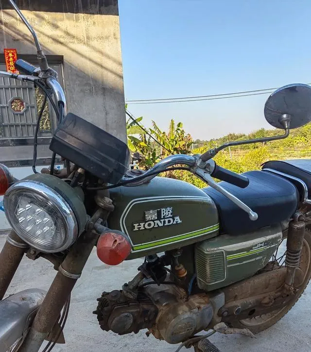 图里绿色这辆就是嘉陵70,外号“弹弓叉”,体积不大,却出了名的省油耐造,八十年代一辆新车三千多元,周围人月工资才五十块,骑到七八年还能卖回四千块,邻里都夸这车利落,妈妈说,以前爷爷上下班全靠它,冬天裹着旧军大衣坐上,手都不用使劲,油门轻轻一捏就溜达到厂里,纯进口铁壳加粗轮胎,架子点火走遍村西头,一下没熄过火。