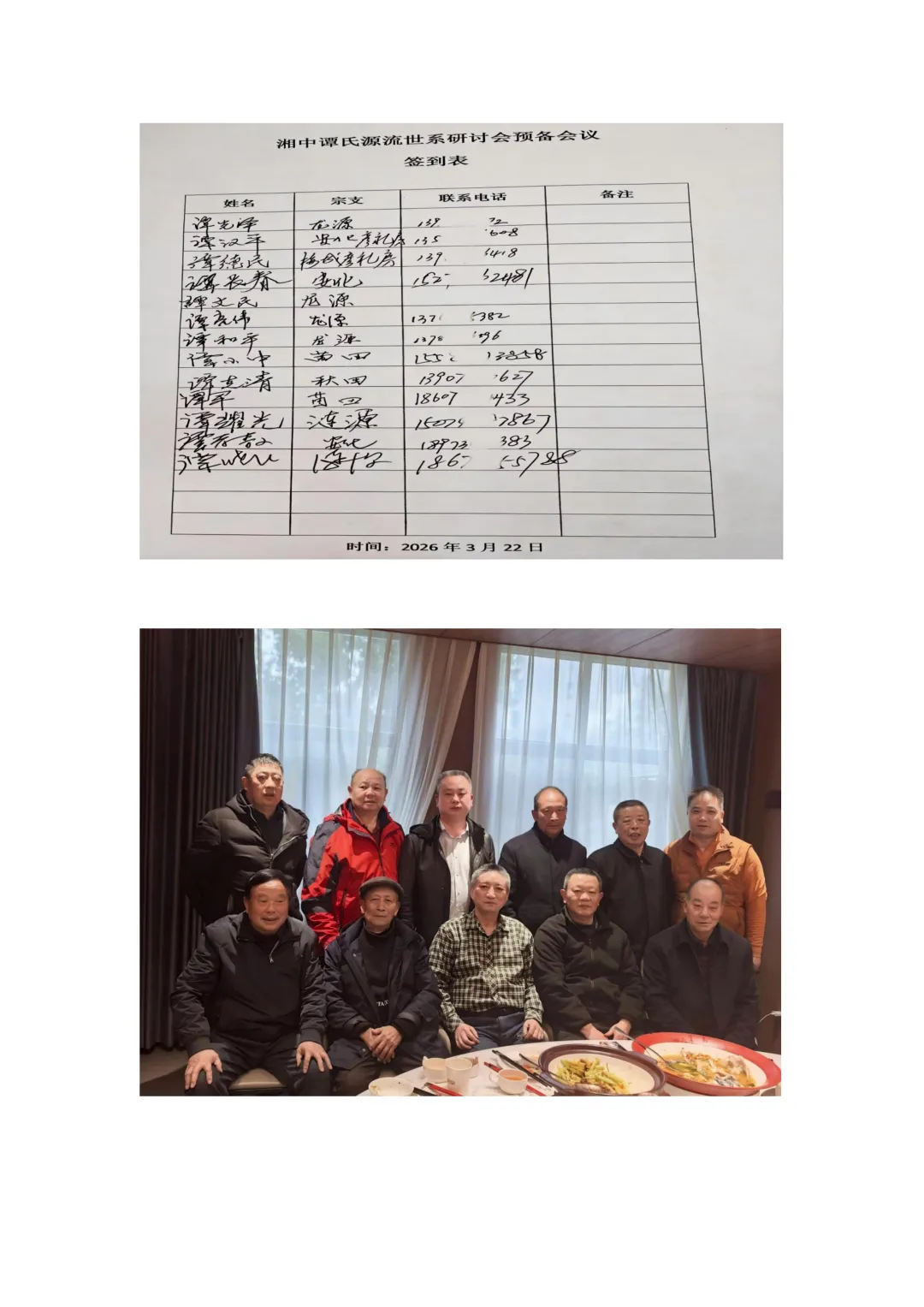 1.2023年底召开《湖南谭氏志》编委成立会时,了解到隆回、新邵与涟源的争议后,特地把隆回、新邵、安化与涟源参会代表安排在一桌吃饭,他们当时单独建了微信群,同意共同探讨和协商解决分歧。