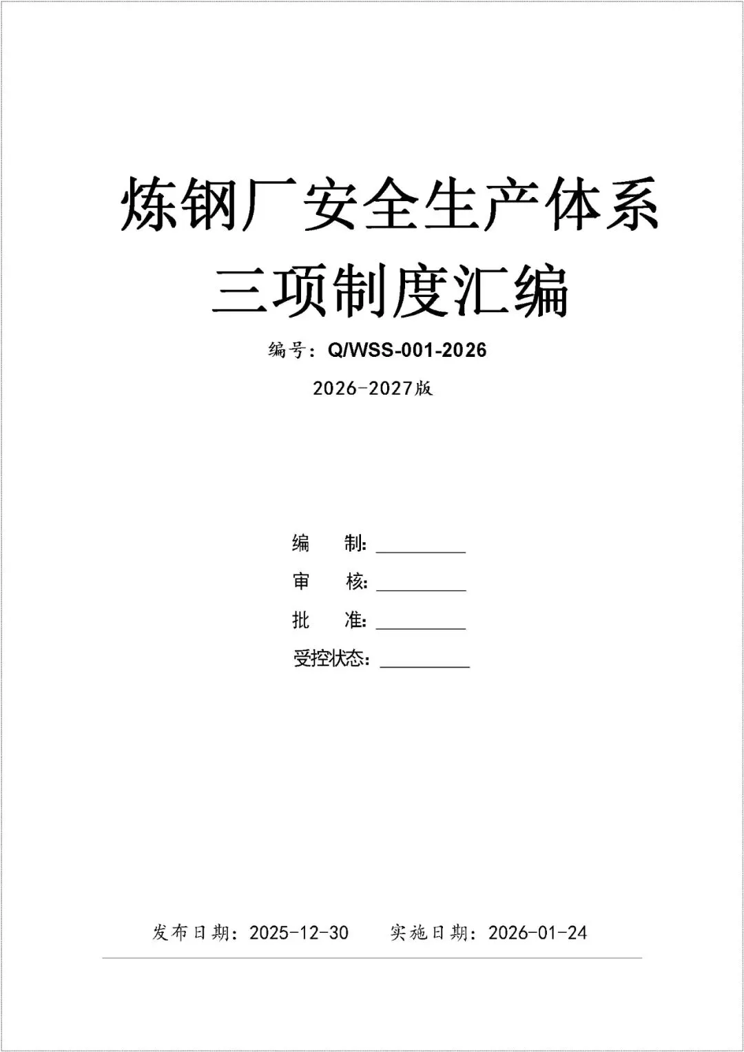 【WORD】冶金炼钢厂安全生产三项制度(安全生产责任制、制度、操作规程)汇编