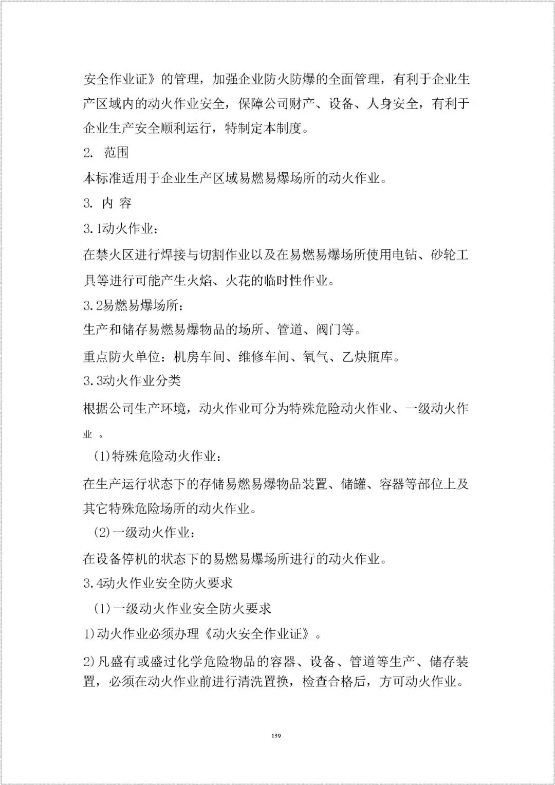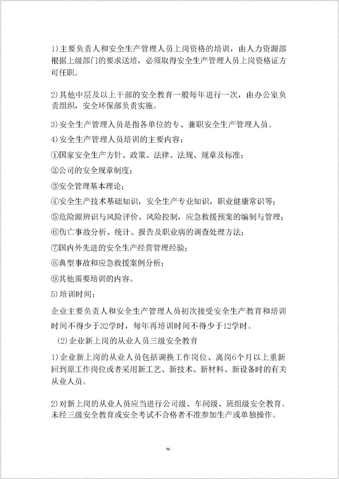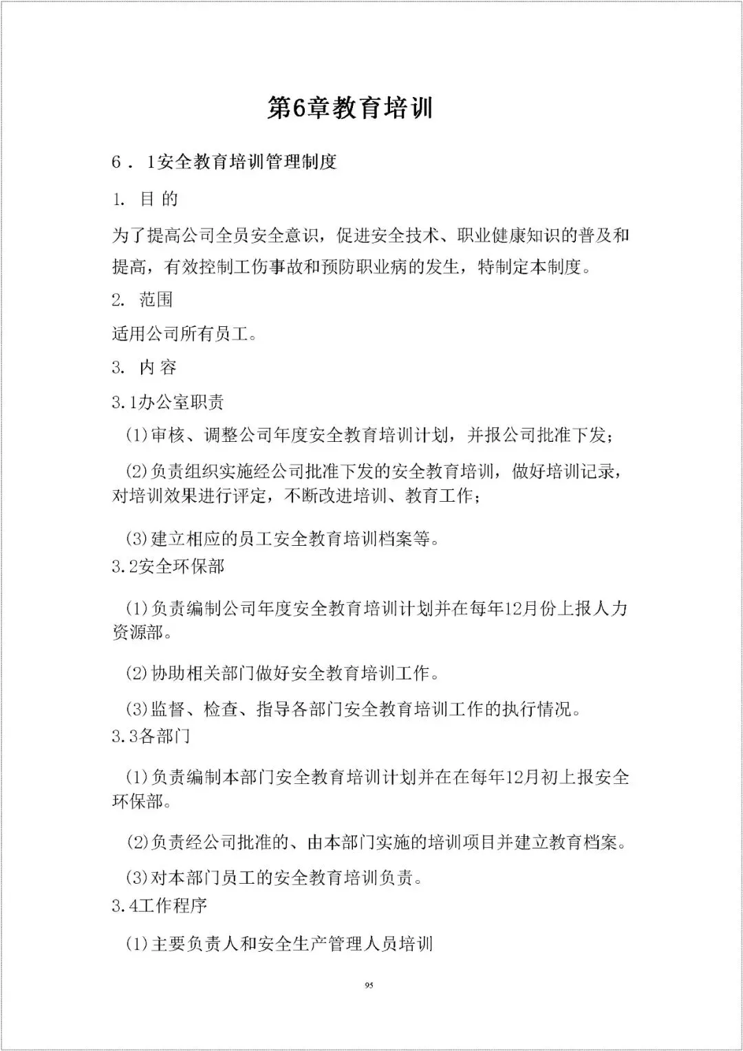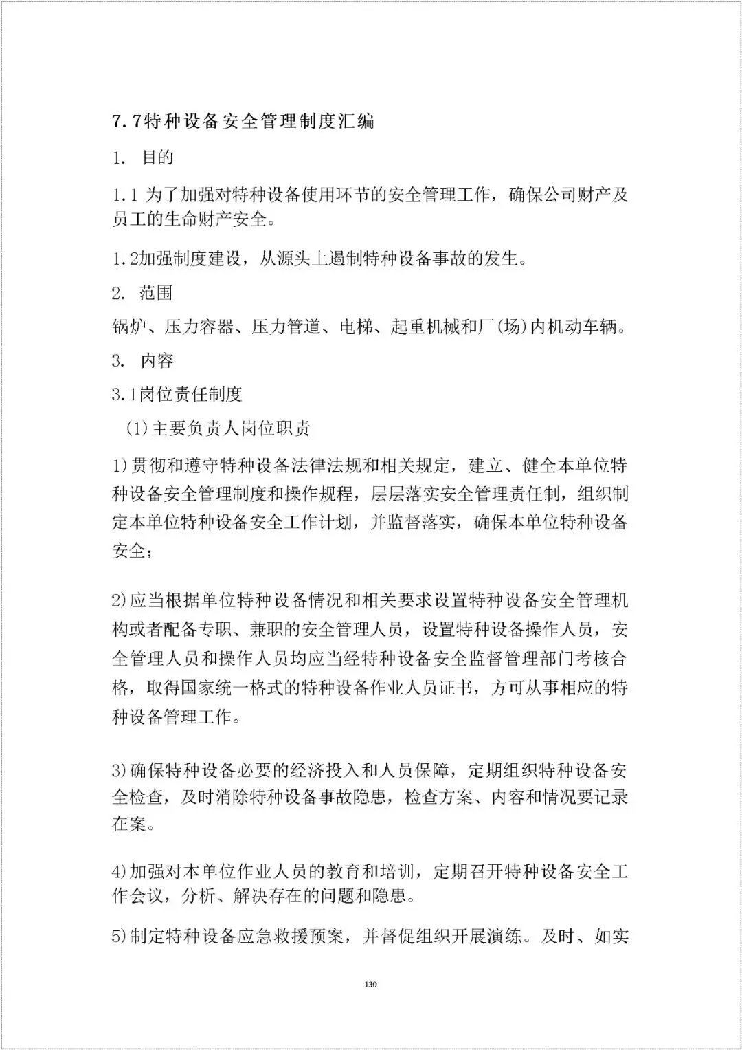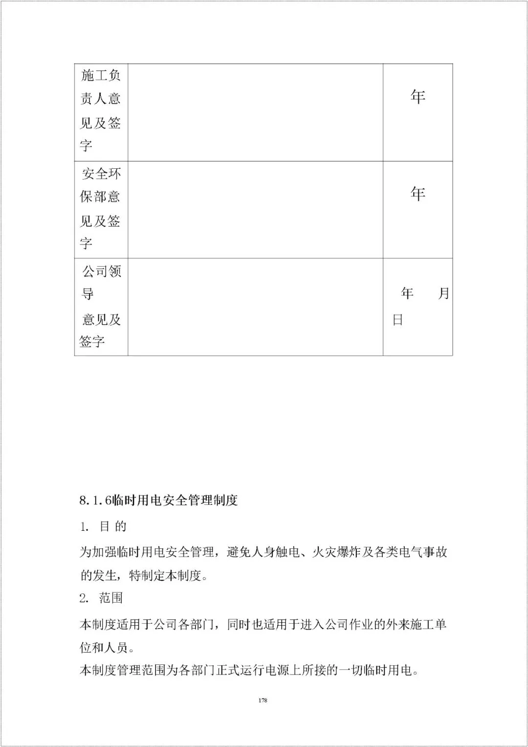 5.2 危险源点管理制度 575.3 煤气安全管理制度 605.4 安全检查制度 675.5 安全基础设施管理制度 705.6 安全奖惩制度 755.7 安全管理奖发放与考核办法 775.8 安全生产“挂牌”竞赛及安全先进评比办法 785.9 消防安全管理制度 795.10 特种作业人员管理制度 825.11 安全投入保障制度 895.12 劳动防护用品(具)和保健品发放管理制度 905.13 事故管理制度 905.14 职业卫生管理制度 925.15 安全生产会议管理制度 93第 6 章 教育培训 956.1 安全教育培训管理制度 956.2 年度安全教育培训计划 996.2.1 附表1:三级教育 1036.2.2 附表2:培训记录 1066.2.3 附表3:人员持证台账 108第 7 章 生产设备设施 1097.1 建设项目安全“三同时”管理制度 1097.2 设备设施安全管理制度 1127.3 生产设备、设施验收管理制度 1177.4 生产设施设备检修、维修和保养的安全管理制度 1197.5 生产设施安全拆除和报废管理制度 1217.6 电气设施安全管理制度 1247.7 特种设备安全管理制度汇编 1307.7.1 附表1:特种设备统计台账 1377.8 特种(设备)作业人员管理制度 138第 8 章 作业安全 1428.1 危险作业管理制度 1428.1.1 交叉作业管理制度 1428.1.2 受限空间作业安全管理制度 1518.1.3 动火作业安全管理制度 1588.1.4 大型吊装作业安全管理制度 1658.1.5 高处作业管理制度 1738.1.6 临时用电安全管理制度 1788.1.7 有毒、有害作业安全管理制度 1838.1.8 能源介质安全作业管理制度 1868.2 警示标志和安全防护管理制度 1918.3 变更管理制度 1938.3.1 附表1:变更申请表 1968.3.2 附表2:变更验收表 198