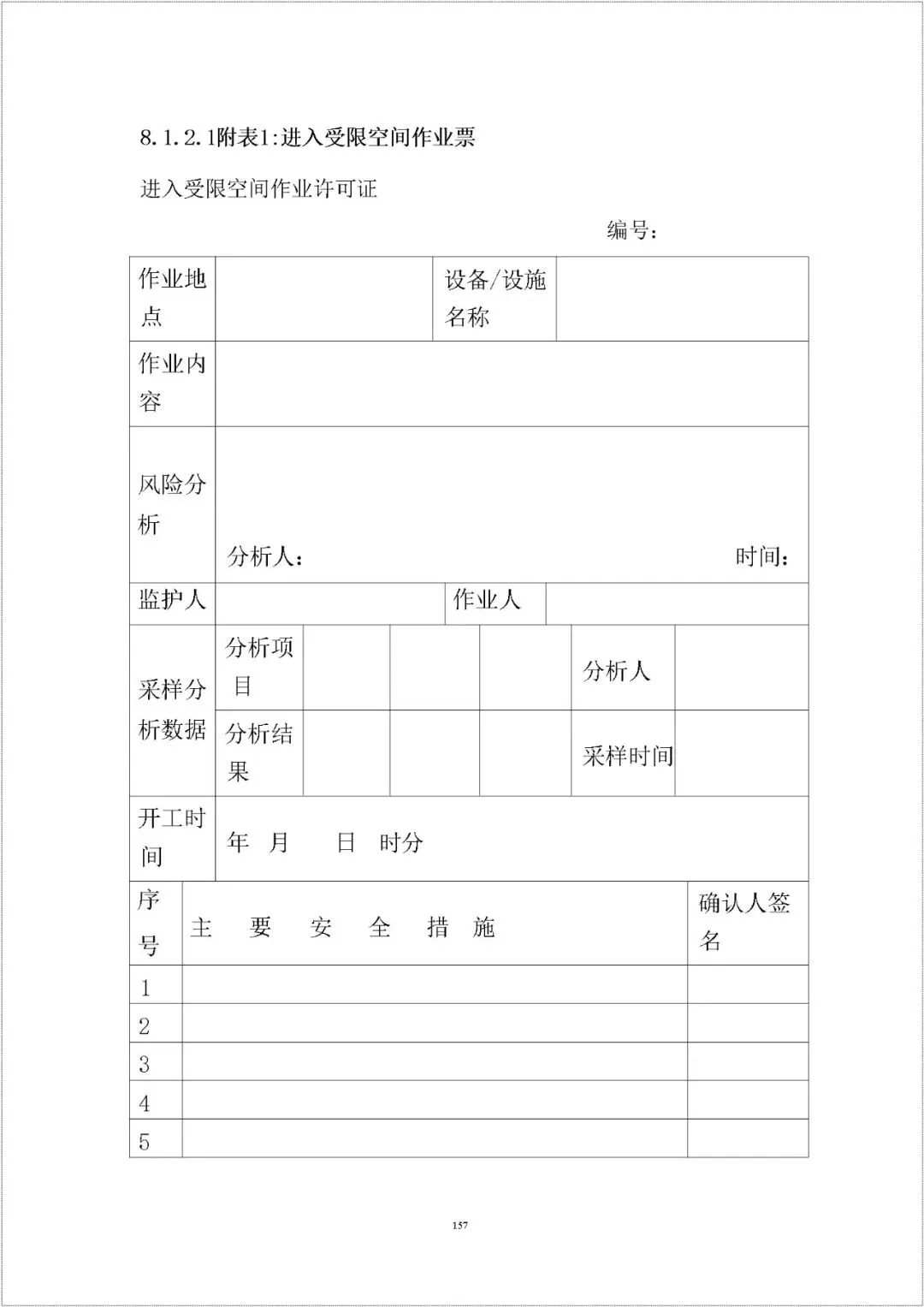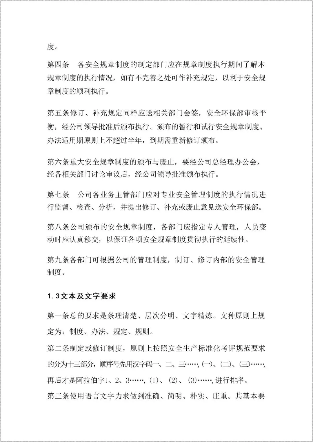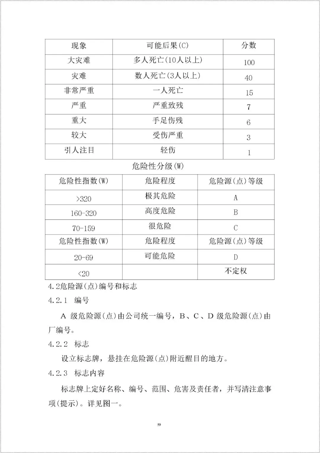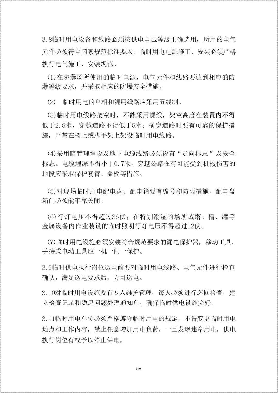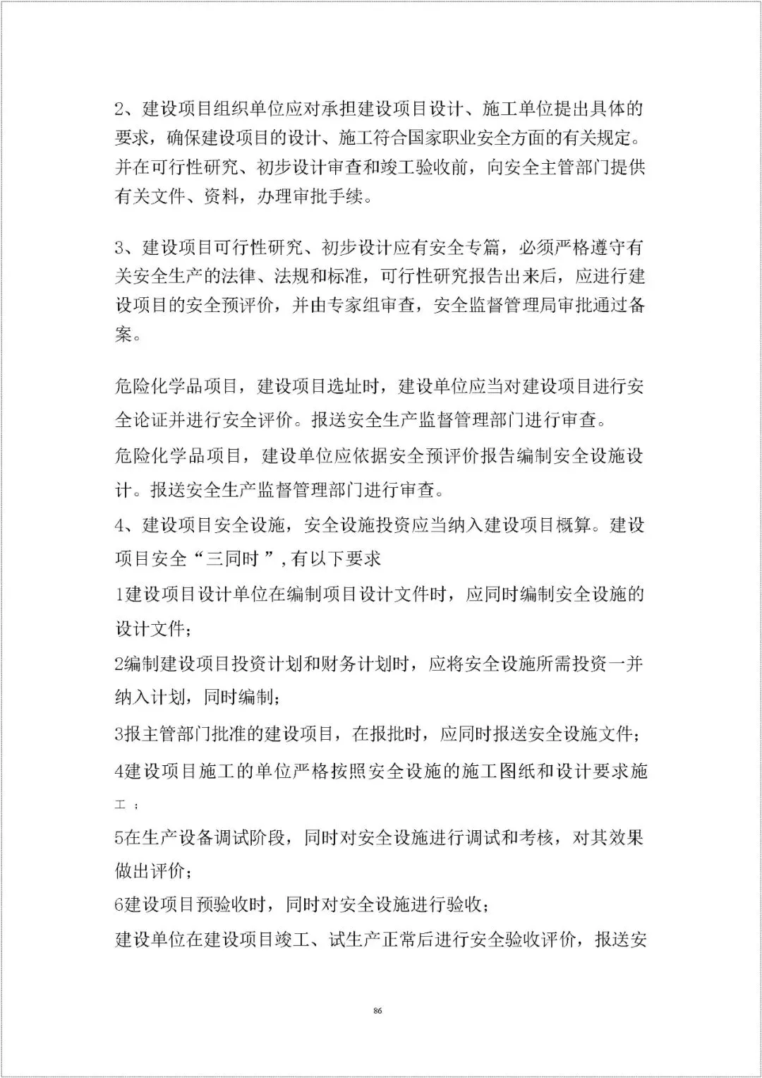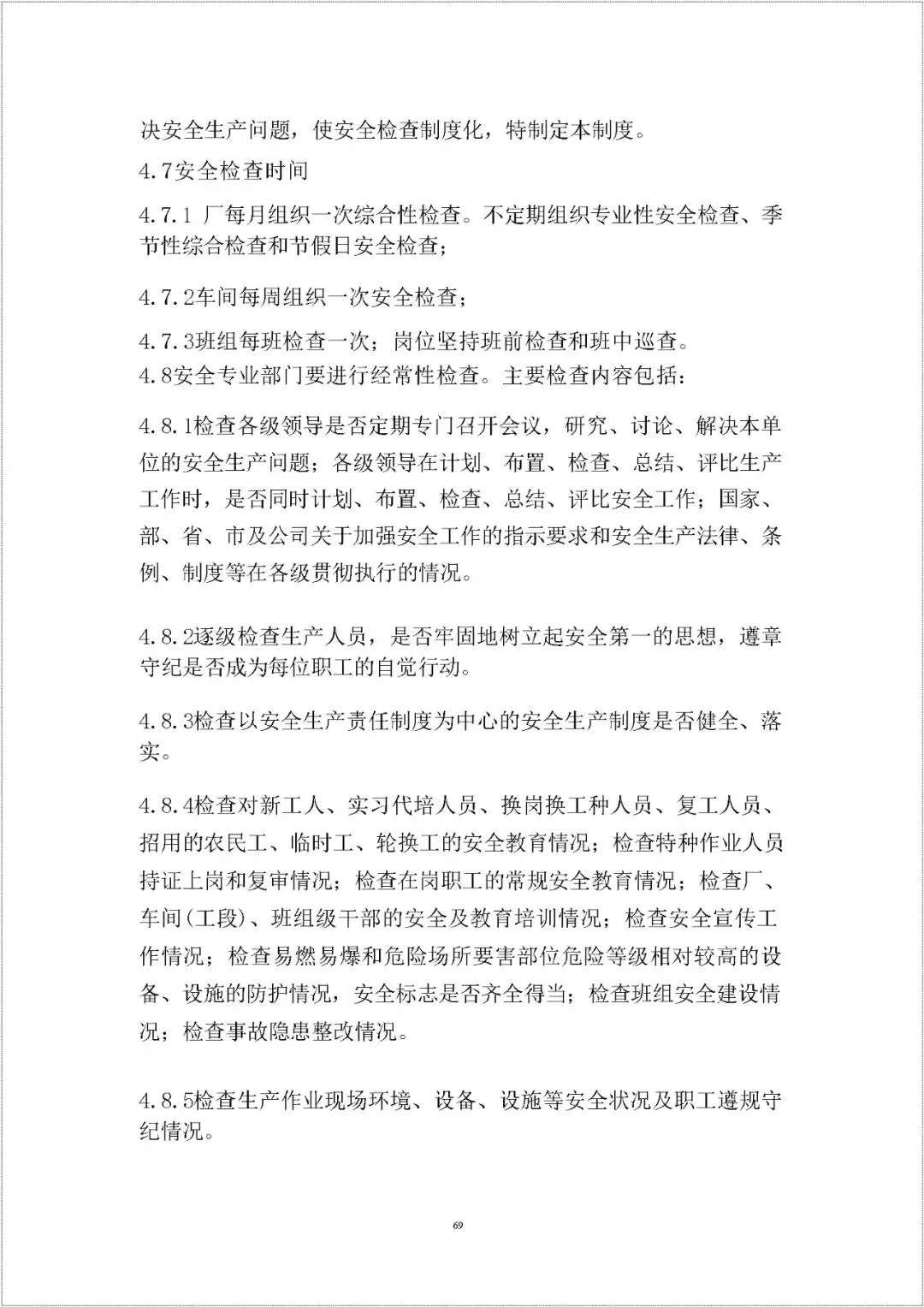 5.2 危险源点管理制度 575.3 煤气安全管理制度 605.4 安全检查制度 675.5 安全基础设施管理制度 705.6 安全奖惩制度 755.7 安全管理奖发放与考核办法 775.8 安全生产“挂牌”竞赛及安全先进评比办法 785.9 消防安全管理制度 795.10 特种作业人员管理制度 825.11 安全投入保障制度 895.12 劳动防护用品(具)和保健品发放管理制度 905.13 事故管理制度 905.14 职业卫生管理制度 925.15 安全生产会议管理制度 93第 6 章 教育培训 956.1 安全教育培训管理制度 956.2 年度安全教育培训计划 996.2.1 附表1:三级教育 1036.2.2 附表2:培训记录 1066.2.3 附表3:人员持证台账 108第 7 章 生产设备设施 1097.1 建设项目安全“三同时”管理制度 1097.2 设备设施安全管理制度 1127.3 生产设备、设施验收管理制度 1177.4 生产设施设备检修、维修和保养的安全管理制度 1197.5 生产设施安全拆除和报废管理制度 1217.6 电气设施安全管理制度 1247.7 特种设备安全管理制度汇编 1307.7.1 附表1:特种设备统计台账 1377.8 特种(设备)作业人员管理制度 138第 8 章 作业安全 1428.1 危险作业管理制度 1428.1.1 交叉作业管理制度 1428.1.2 受限空间作业安全管理制度 1518.1.3 动火作业安全管理制度 1588.1.4 大型吊装作业安全管理制度 1658.1.5 高处作业管理制度 1738.1.6 临时用电安全管理制度 1788.1.7 有毒、有害作业安全管理制度 1838.1.8 能源介质安全作业管理制度 1868.2 警示标志和安全防护管理制度 1918.3 变更管理制度 1938.3.1 附表1:变更申请表 1968.3.2 附表2:变更验收表 198
