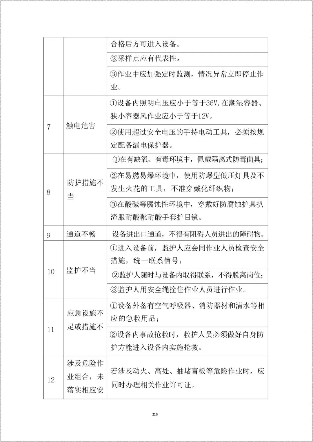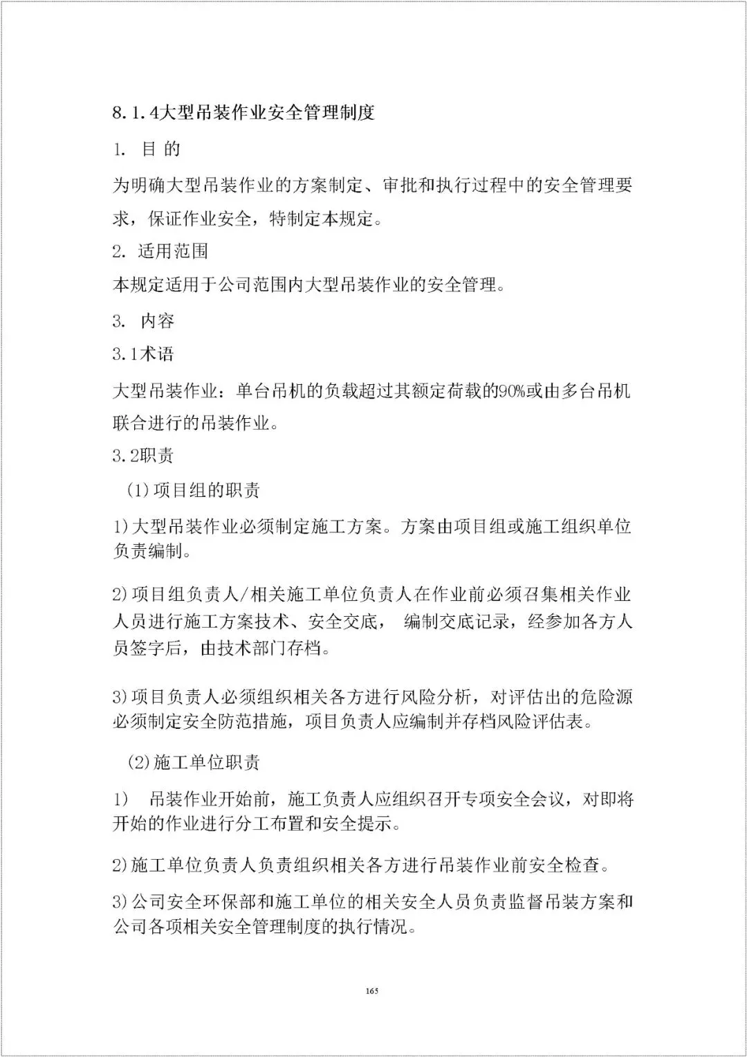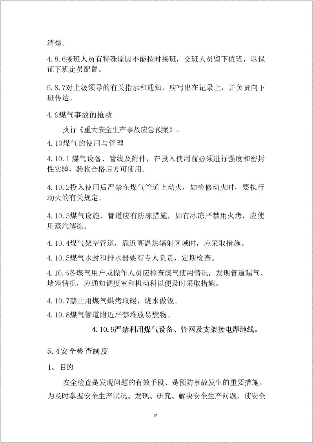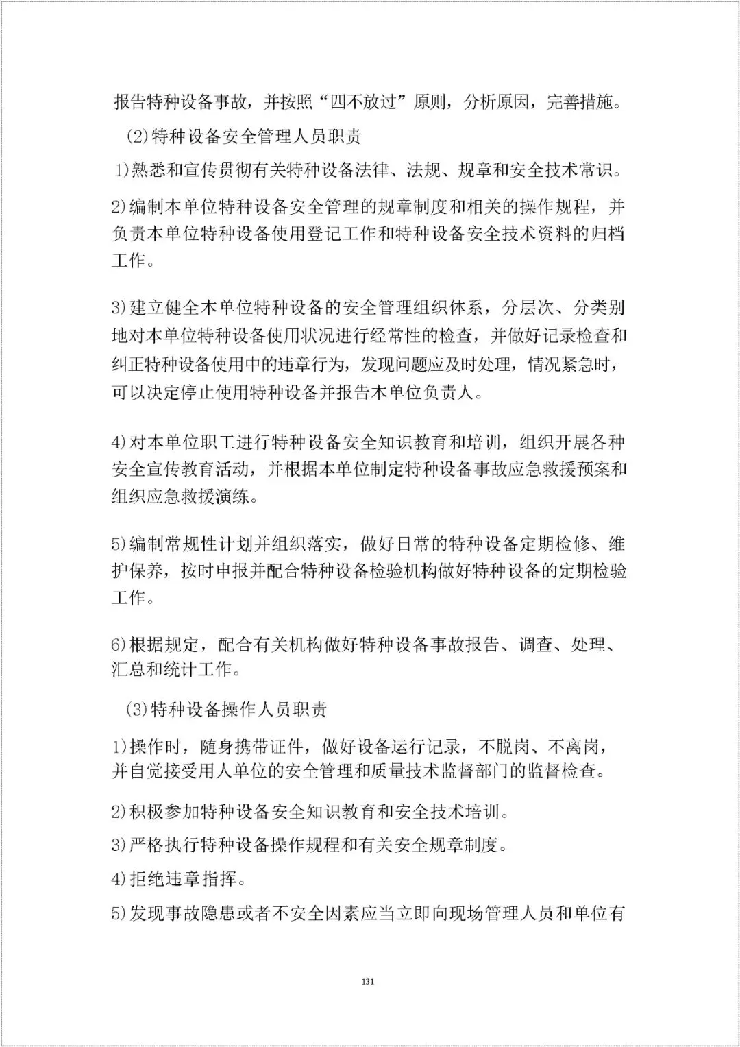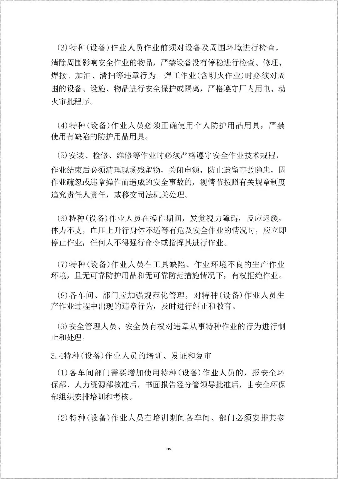 5.2 危险源点管理制度 575.3 煤气安全管理制度 605.4 安全检查制度 675.5 安全基础设施管理制度 705.6 安全奖惩制度 755.7 安全管理奖发放与考核办法 775.8 安全生产“挂牌”竞赛及安全先进评比办法 785.9 消防安全管理制度 795.10 特种作业人员管理制度 825.11 安全投入保障制度 895.12 劳动防护用品(具)和保健品发放管理制度 905.13 事故管理制度 905.14 职业卫生管理制度 925.15 安全生产会议管理制度 93第 6 章 教育培训 956.1 安全教育培训管理制度 956.2 年度安全教育培训计划 996.2.1 附表1:三级教育 1036.2.2 附表2:培训记录 1066.2.3 附表3:人员持证台账 108第 7 章 生产设备设施 1097.1 建设项目安全“三同时”管理制度 1097.2 设备设施安全管理制度 1127.3 生产设备、设施验收管理制度 1177.4 生产设施设备检修、维修和保养的安全管理制度 1197.5 生产设施安全拆除和报废管理制度 1217.6 电气设施安全管理制度 1247.7 特种设备安全管理制度汇编 1307.7.1 附表1:特种设备统计台账 1377.8 特种(设备)作业人员管理制度 138第 8 章 作业安全 1428.1 危险作业管理制度 1428.1.1 交叉作业管理制度 1428.1.2 受限空间作业安全管理制度 1518.1.3 动火作业安全管理制度 1588.1.4 大型吊装作业安全管理制度 1658.1.5 高处作业管理制度 1738.1.6 临时用电安全管理制度 1788.1.7 有毒、有害作业安全管理制度 1838.1.8 能源介质安全作业管理制度 1868.2 警示标志和安全防护管理制度 1918.3 变更管理制度 1938.3.1 附表1:变更申请表 1968.3.2 附表2:变更验收表 198