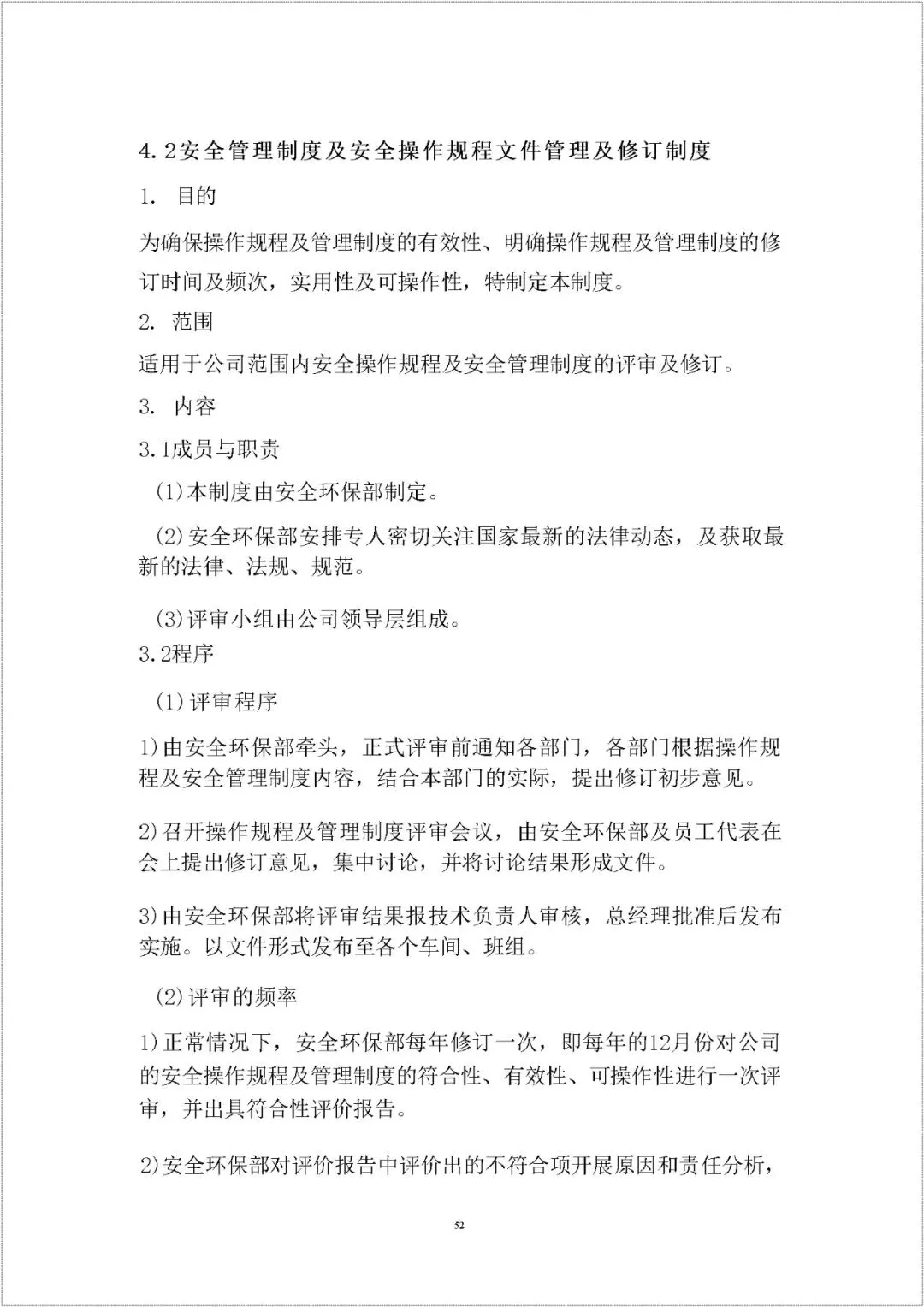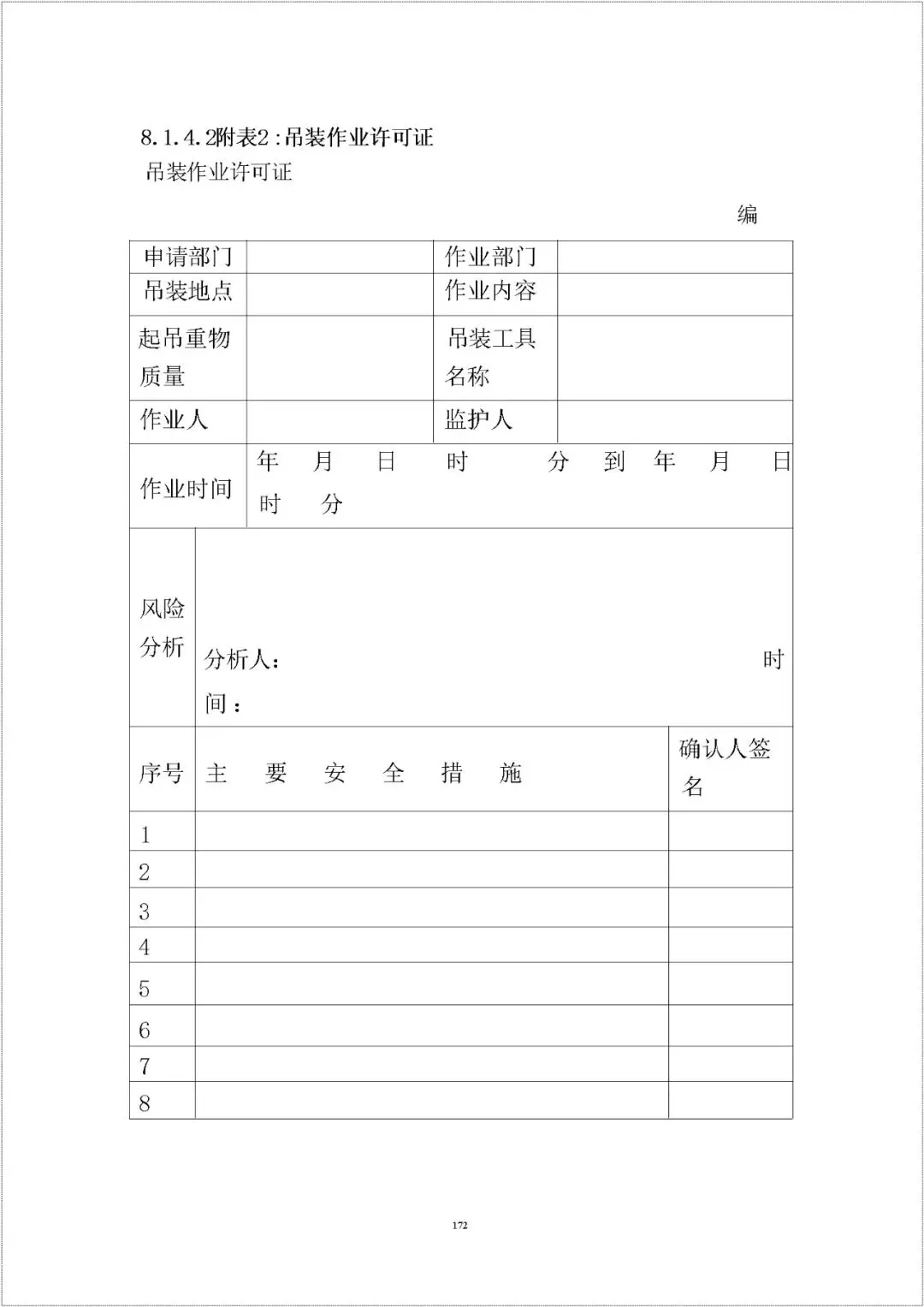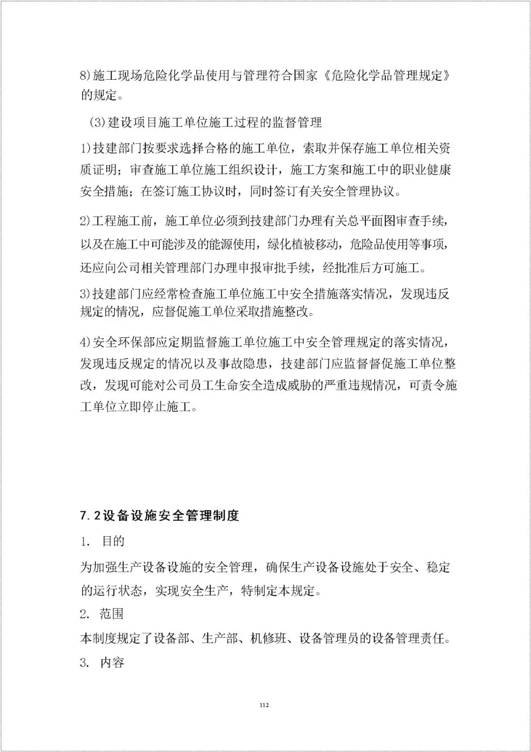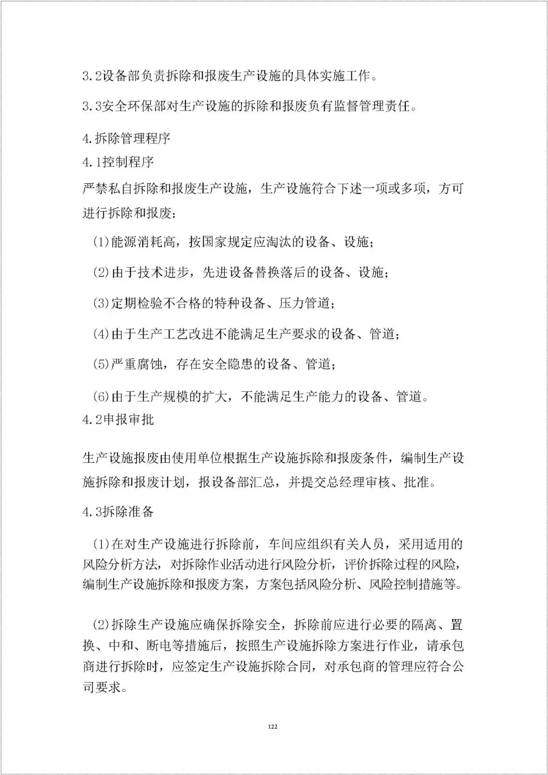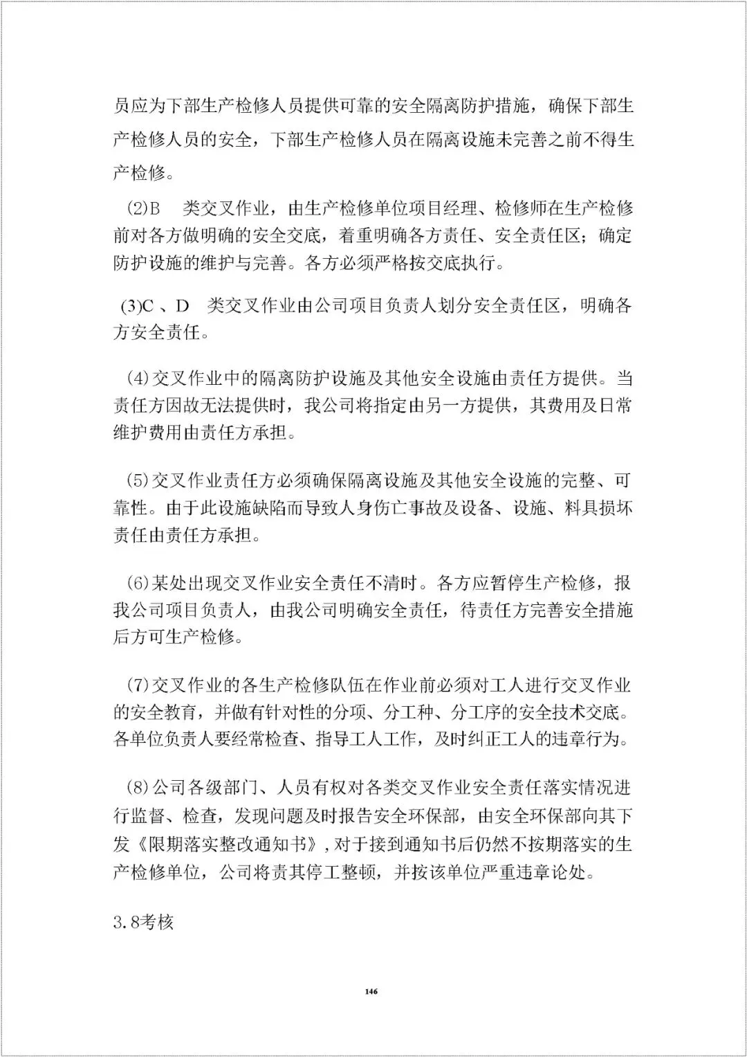 5.2 危险源点管理制度 575.3 煤气安全管理制度 605.4 安全检查制度 675.5 安全基础设施管理制度 705.6 安全奖惩制度 755.7 安全管理奖发放与考核办法 775.8 安全生产“挂牌”竞赛及安全先进评比办法 785.9 消防安全管理制度 795.10 特种作业人员管理制度 825.11 安全投入保障制度 895.12 劳动防护用品(具)和保健品发放管理制度 905.13 事故管理制度 905.14 职业卫生管理制度 925.15 安全生产会议管理制度 93第 6 章 教育培训 956.1 安全教育培训管理制度 956.2 年度安全教育培训计划 996.2.1 附表1:三级教育 1036.2.2 附表2:培训记录 1066.2.3 附表3:人员持证台账 108第 7 章 生产设备设施 1097.1 建设项目安全“三同时”管理制度 1097.2 设备设施安全管理制度 1127.3 生产设备、设施验收管理制度 1177.4 生产设施设备检修、维修和保养的安全管理制度 1197.5 生产设施安全拆除和报废管理制度 1217.6 电气设施安全管理制度 1247.7 特种设备安全管理制度汇编 1307.7.1 附表1:特种设备统计台账 1377.8 特种(设备)作业人员管理制度 138第 8 章 作业安全 1428.1 危险作业管理制度 1428.1.1 交叉作业管理制度 1428.1.2 受限空间作业安全管理制度 1518.1.3 动火作业安全管理制度 1588.1.4 大型吊装作业安全管理制度 1658.1.5 高处作业管理制度 1738.1.6 临时用电安全管理制度 1788.1.7 有毒、有害作业安全管理制度 1838.1.8 能源介质安全作业管理制度 1868.2 警示标志和安全防护管理制度 1918.3 变更管理制度 1938.3.1 附表1:变更申请表 1968.3.2 附表2:变更验收表 198
