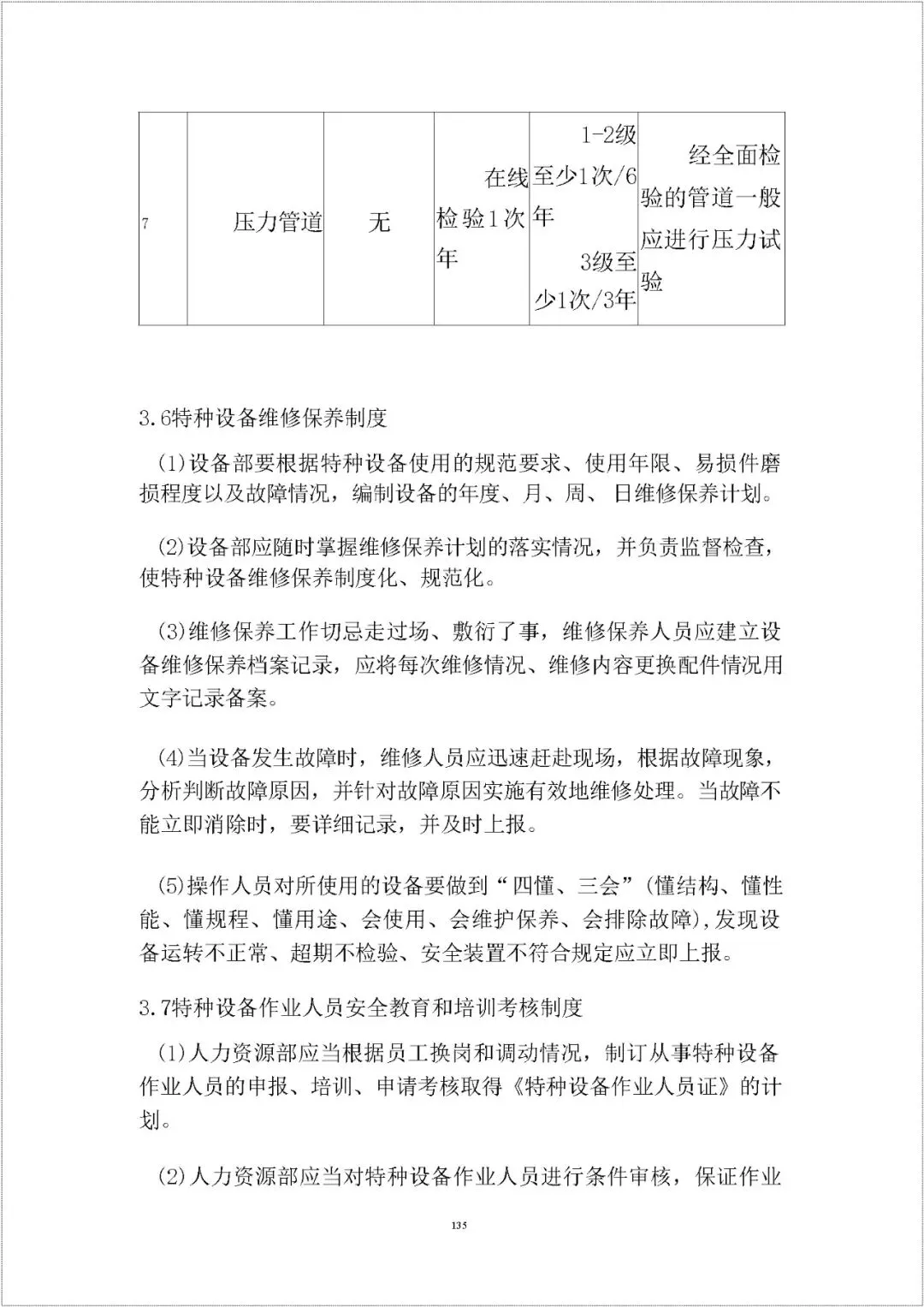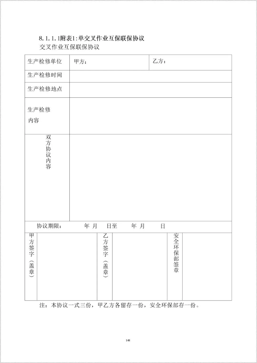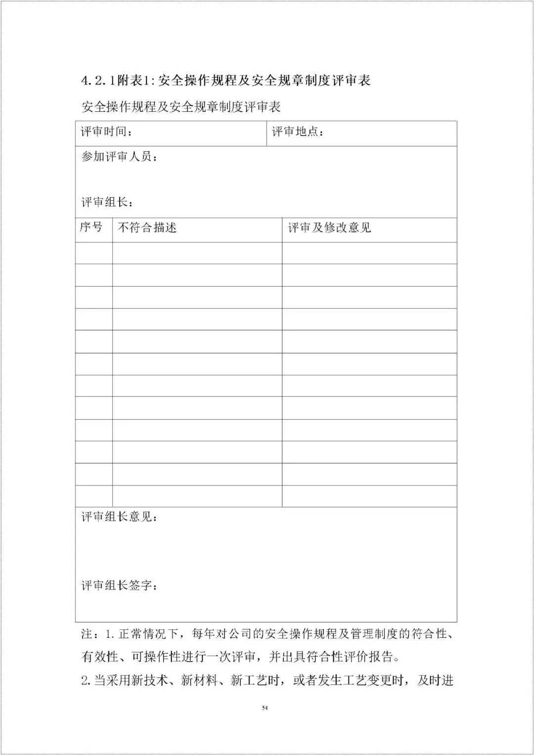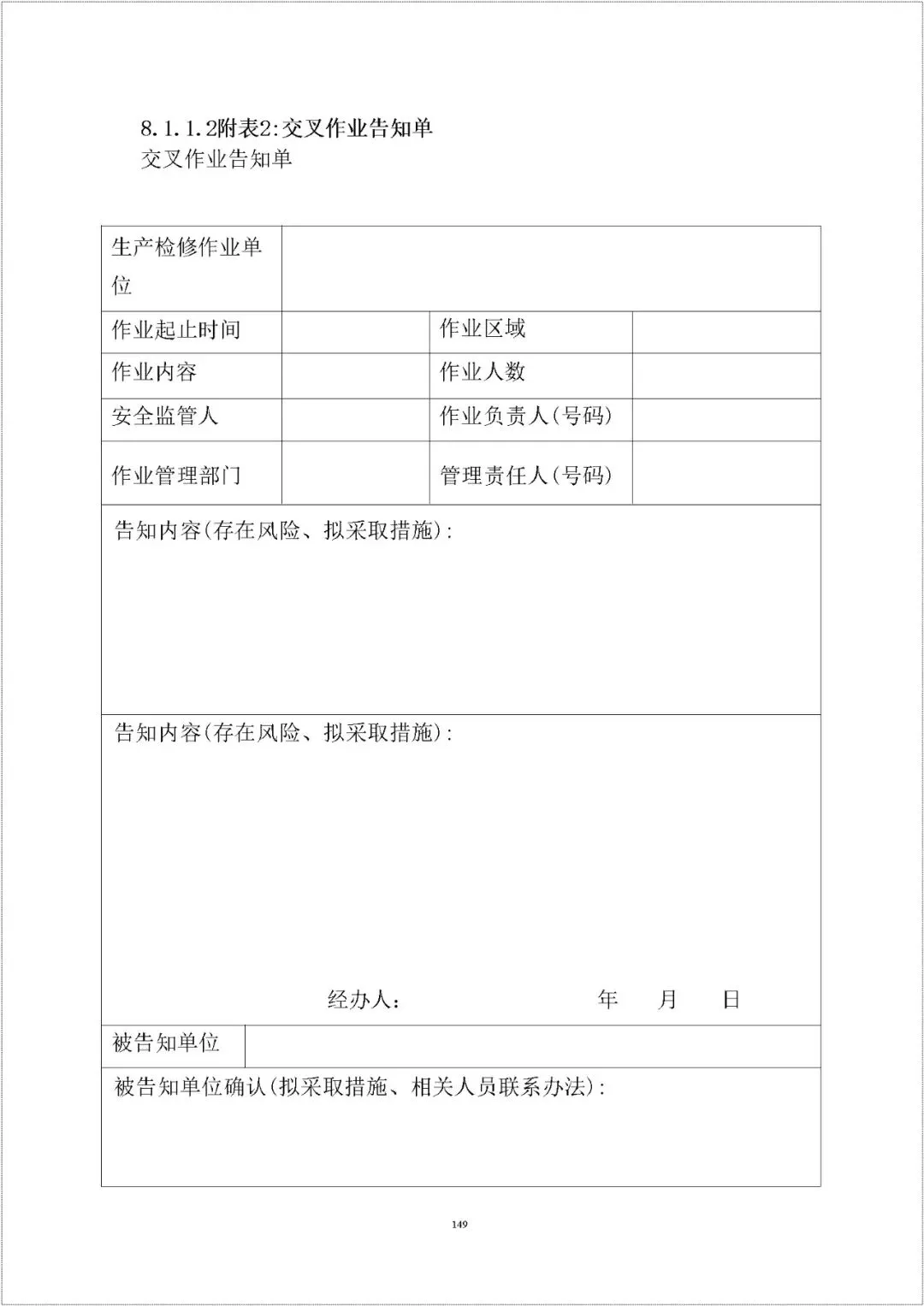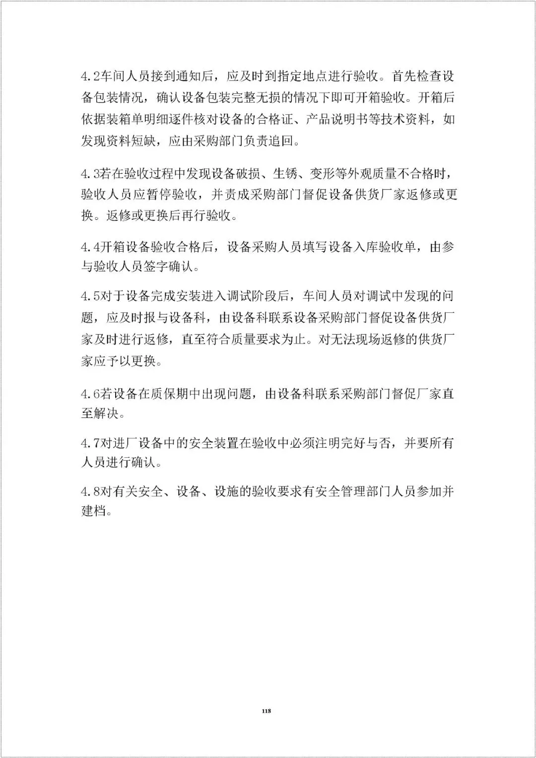 5.2 危险源点管理制度 575.3 煤气安全管理制度 605.4 安全检查制度 675.5 安全基础设施管理制度 705.6 安全奖惩制度 755.7 安全管理奖发放与考核办法 775.8 安全生产“挂牌”竞赛及安全先进评比办法 785.9 消防安全管理制度 795.10 特种作业人员管理制度 825.11 安全投入保障制度 895.12 劳动防护用品(具)和保健品发放管理制度 905.13 事故管理制度 905.14 职业卫生管理制度 925.15 安全生产会议管理制度 93第 6 章 教育培训 956.1 安全教育培训管理制度 956.2 年度安全教育培训计划 996.2.1 附表1:三级教育 1036.2.2 附表2:培训记录 1066.2.3 附表3:人员持证台账 108第 7 章 生产设备设施 1097.1 建设项目安全“三同时”管理制度 1097.2 设备设施安全管理制度 1127.3 生产设备、设施验收管理制度 1177.4 生产设施设备检修、维修和保养的安全管理制度 1197.5 生产设施安全拆除和报废管理制度 1217.6 电气设施安全管理制度 1247.7 特种设备安全管理制度汇编 1307.7.1 附表1:特种设备统计台账 1377.8 特种(设备)作业人员管理制度 138第 8 章 作业安全 1428.1 危险作业管理制度 1428.1.1 交叉作业管理制度 1428.1.2 受限空间作业安全管理制度 1518.1.3 动火作业安全管理制度 1588.1.4 大型吊装作业安全管理制度 1658.1.5 高处作业管理制度 1738.1.6 临时用电安全管理制度 1788.1.7 有毒、有害作业安全管理制度 1838.1.8 能源介质安全作业管理制度 1868.2 警示标志和安全防护管理制度 1918.3 变更管理制度 1938.3.1 附表1:变更申请表 1968.3.2 附表2:变更验收表 198