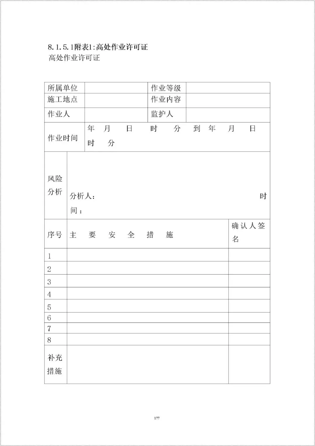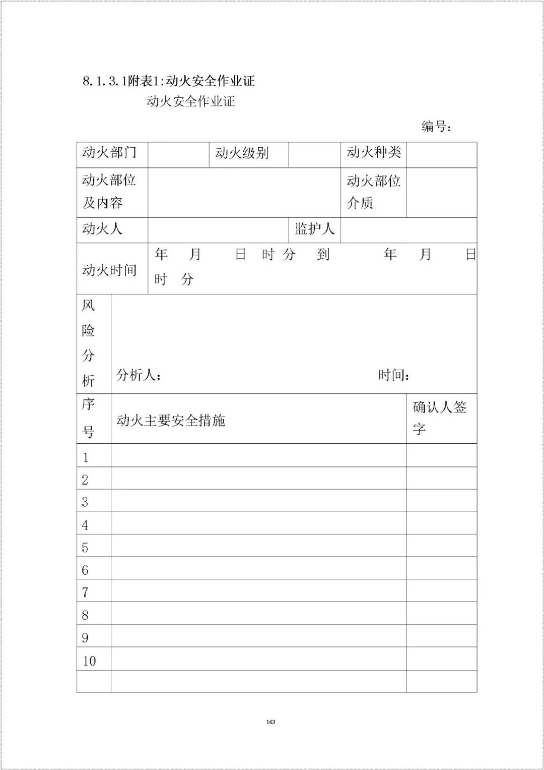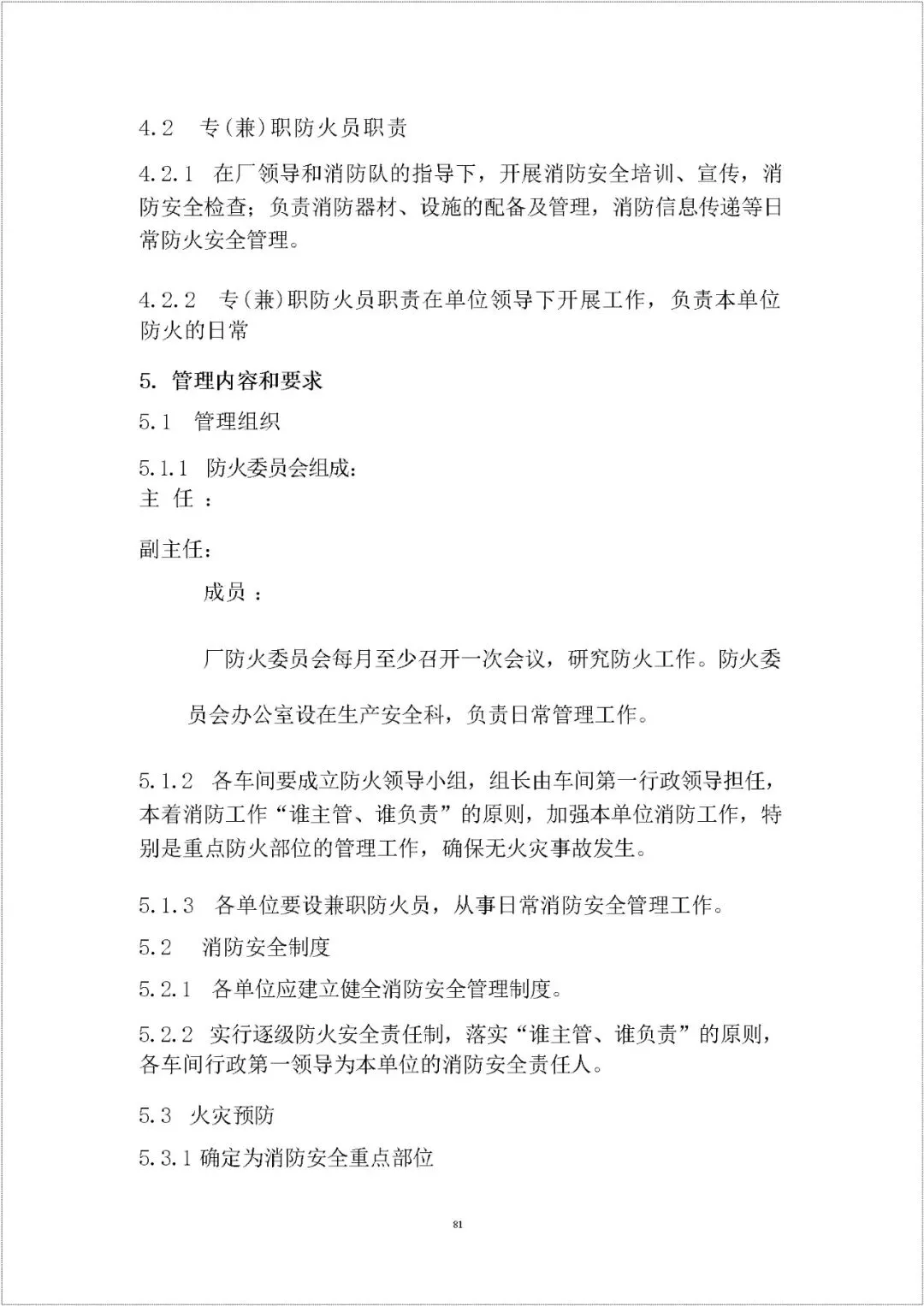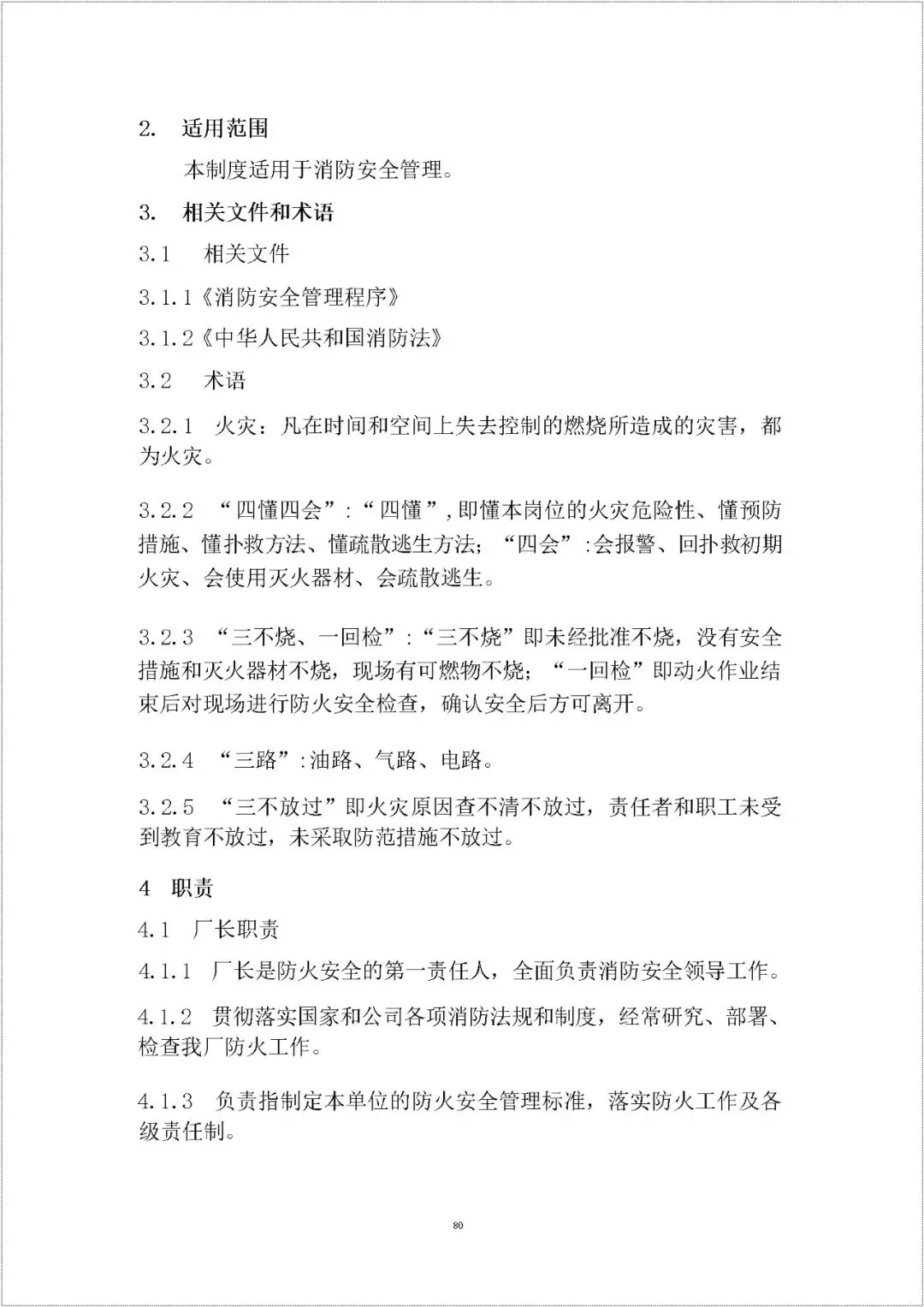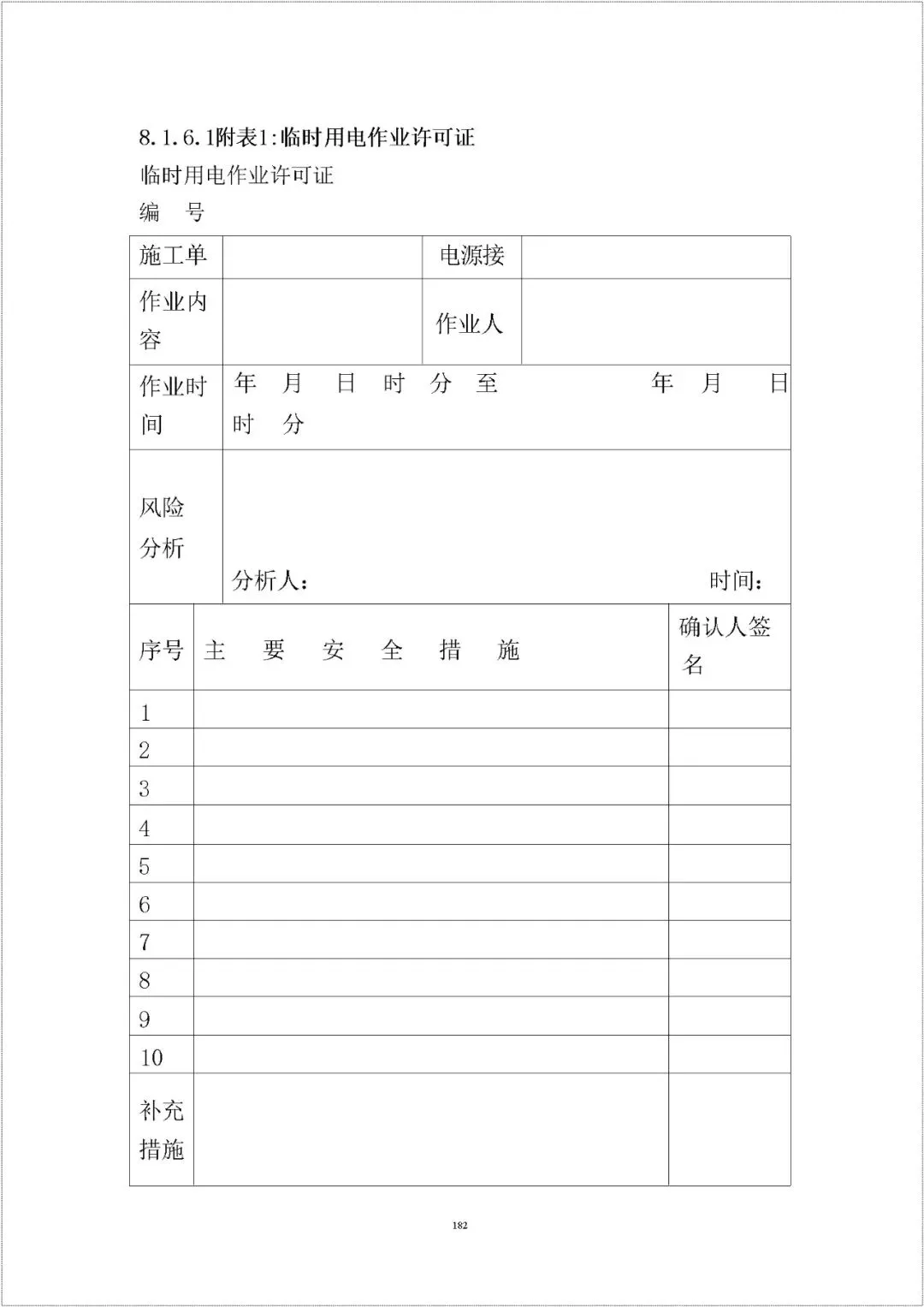 5.2 危险源点管理制度 575.3 煤气安全管理制度 605.4 安全检查制度 675.5 安全基础设施管理制度 705.6 安全奖惩制度 755.7 安全管理奖发放与考核办法 775.8 安全生产“挂牌”竞赛及安全先进评比办法 785.9 消防安全管理制度 795.10 特种作业人员管理制度 825.11 安全投入保障制度 895.12 劳动防护用品(具)和保健品发放管理制度 905.13 事故管理制度 905.14 职业卫生管理制度 925.15 安全生产会议管理制度 93第 6 章 教育培训 956.1 安全教育培训管理制度 956.2 年度安全教育培训计划 996.2.1 附表1:三级教育 1036.2.2 附表2:培训记录 1066.2.3 附表3:人员持证台账 108第 7 章 生产设备设施 1097.1 建设项目安全“三同时”管理制度 1097.2 设备设施安全管理制度 1127.3 生产设备、设施验收管理制度 1177.4 生产设施设备检修、维修和保养的安全管理制度 1197.5 生产设施安全拆除和报废管理制度 1217.6 电气设施安全管理制度 1247.7 特种设备安全管理制度汇编 1307.7.1 附表1:特种设备统计台账 1377.8 特种(设备)作业人员管理制度 138第 8 章 作业安全 1428.1 危险作业管理制度 1428.1.1 交叉作业管理制度 1428.1.2 受限空间作业安全管理制度 1518.1.3 动火作业安全管理制度 1588.1.4 大型吊装作业安全管理制度 1658.1.5 高处作业管理制度 1738.1.6 临时用电安全管理制度 1788.1.7 有毒、有害作业安全管理制度 1838.1.8 能源介质安全作业管理制度 1868.2 警示标志和安全防护管理制度 1918.3 变更管理制度 1938.3.1 附表1:变更申请表 1968.3.2 附表2:变更验收表 198