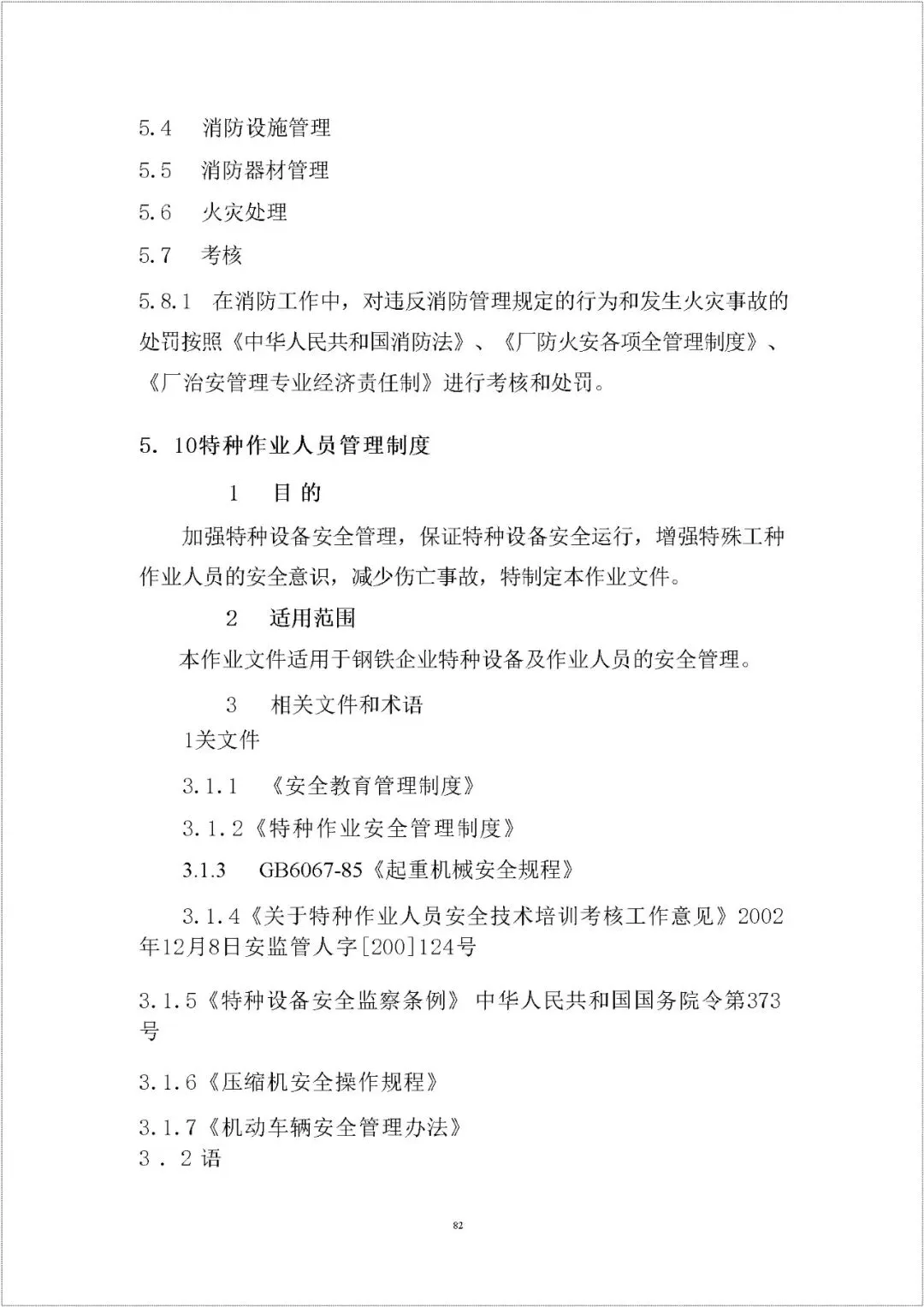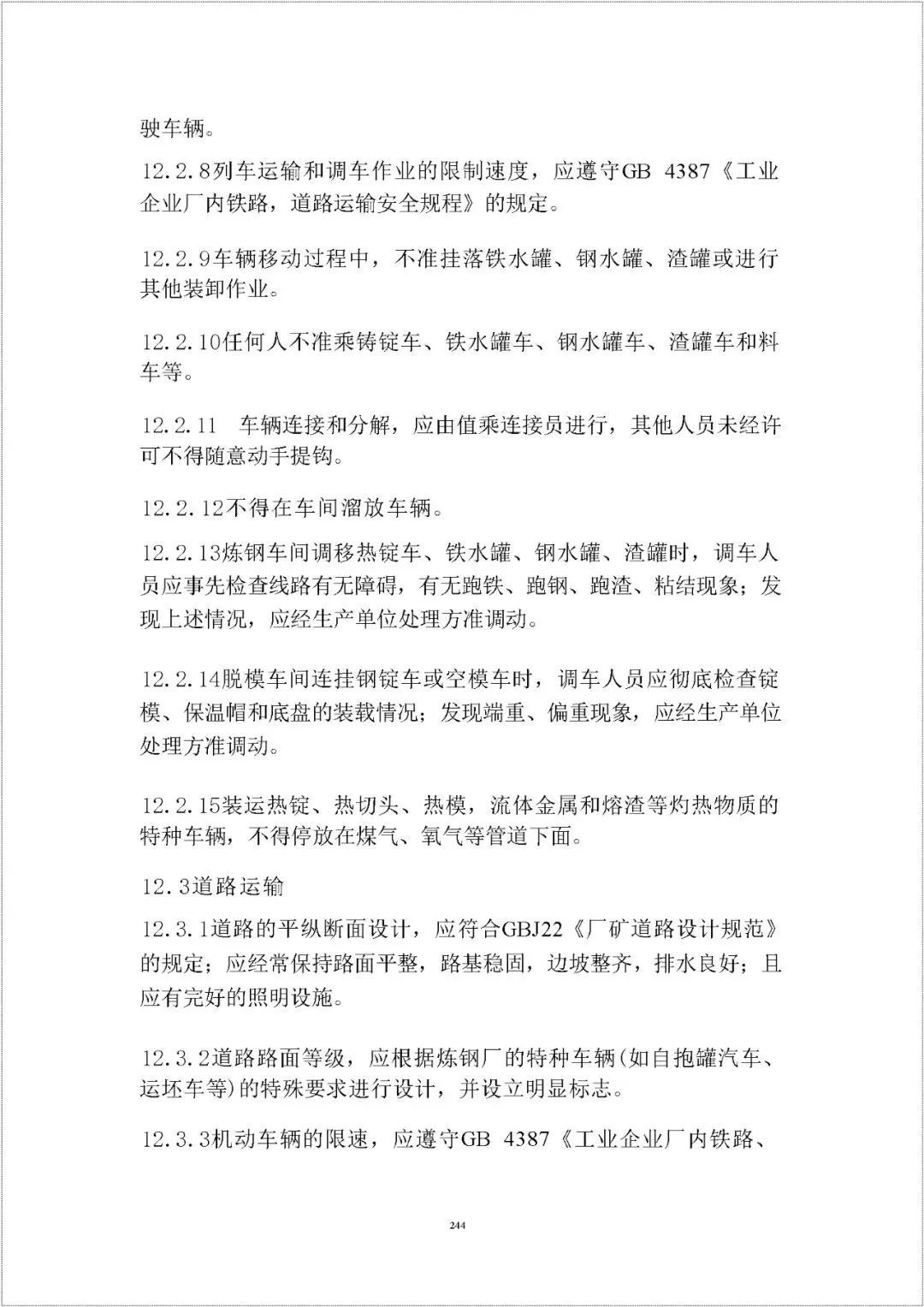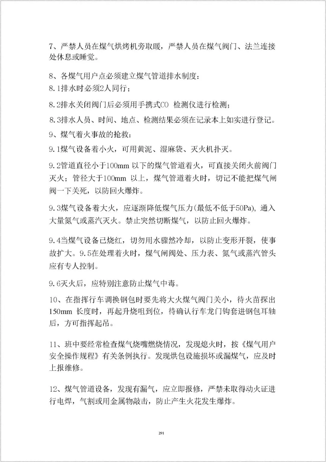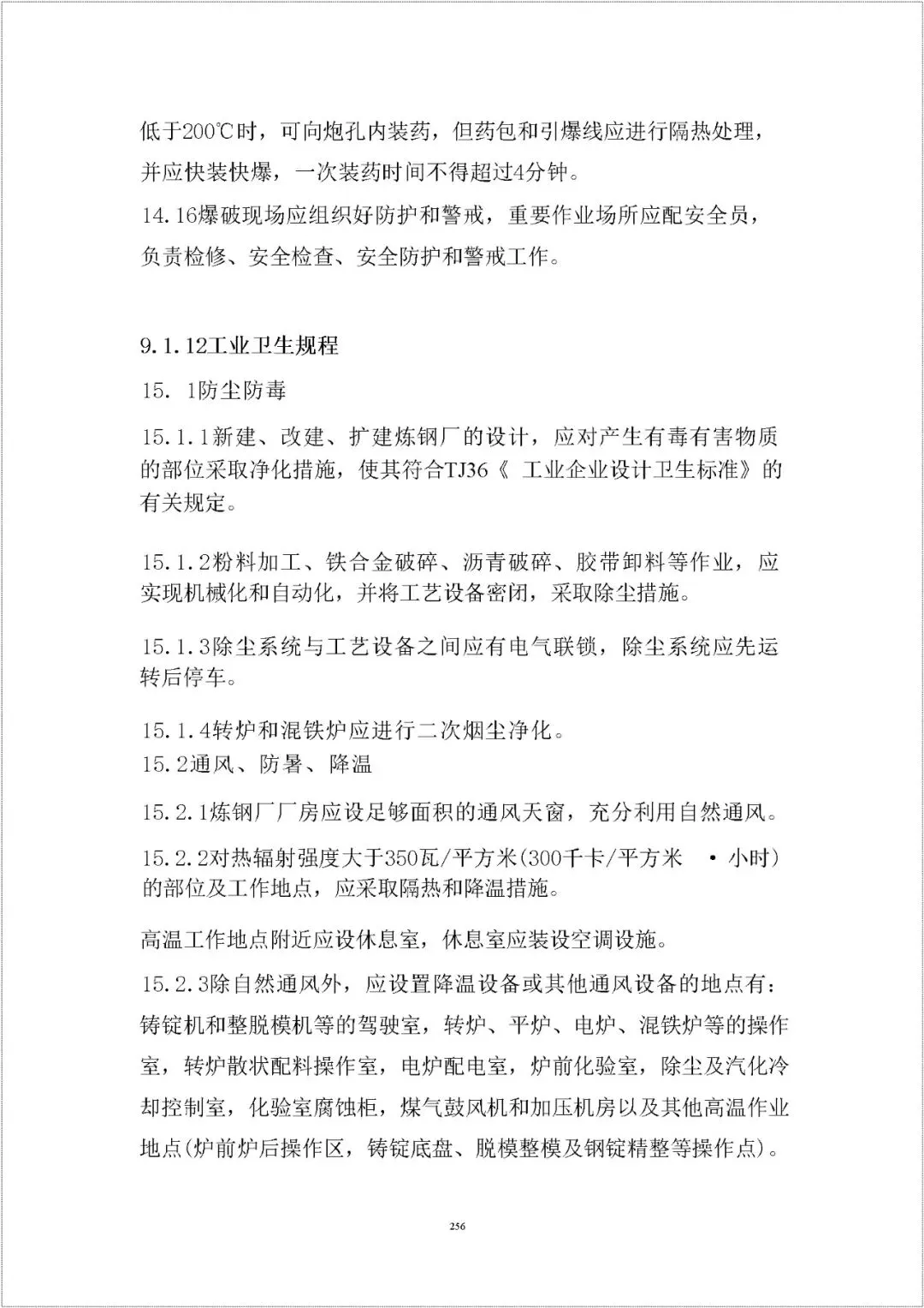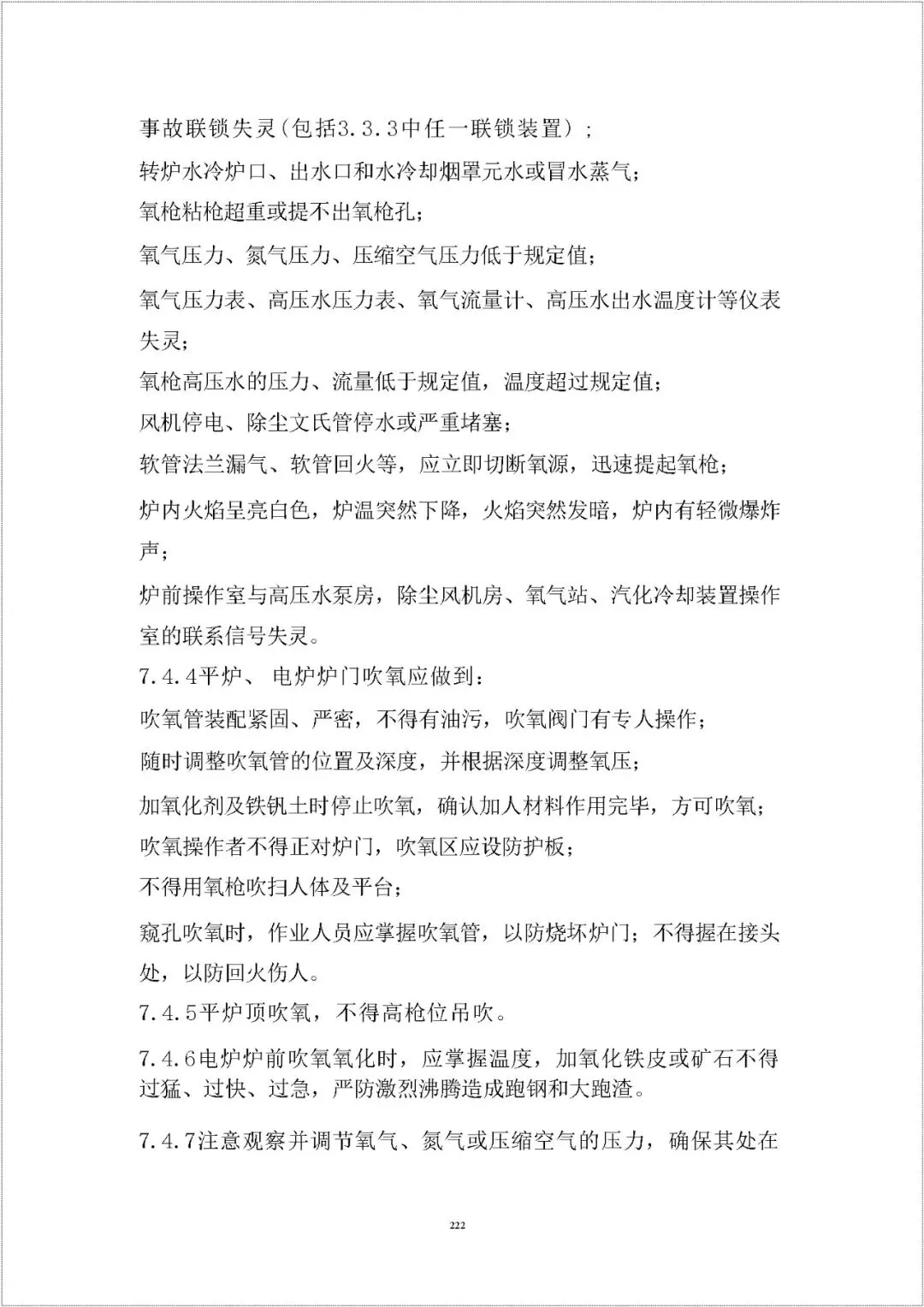 8.4 三违管理制度 2008.4.1 附表1:三违人员记录 2058.5 危险作业风险分析及控制措施 207第 9 章 炼钢厂安全生产规程 2169.1 炼钢厂房安全操作规程 2169.1.1 原材料处置规程 2169.1.2 混铁炉和化铁炉操作规程 2179.1.3 铁水预处理规程 2199.1.4 熔炼操作规程 2199.1.5 炉外精炼规程 2259.1.6 浇注规程 2279.1.7 铁水罐、钢水罐 中间罐和渣罐规程 2329.1.8 烟气净化、汽化冷却规程 2339.1.9 起重与运输规程 2399.1.10 动力管线规程 2469.1.11 炉子检修规程 2529.1.12 工业卫生规程 2569.2 转炉车间安全操作规程 2579.2.1 叉车安全操作规程 2579.2.2 吹氩安全操作规程 2589.2.3 废钢安全操作规程 2609.2.4 合金库安全操作规程 2609.2.5 混铁炉安全操作规程 2619.2.6 炉前工安全操作规程 2639.2.7 转炉煤气回收安全操作规程 2659.2.8 炉下清渣工安全操作规程 2669.2.9 散状料上料安全操作规程 2669.2.10 修包工安全操作规程 2679.2.11 转炉行车工安全操作规程 2689.3 连铸车间安全操作规程 2719.3.1 P3岗位操作规程 2719.3.2 P4岗位操作规程 2759.3.3 P9 岗位操作规程 2769.3.4 主控配水岗位操作规程 2789.3.5 中间包修砌操作规程 2799.3.6 连铸行车工安全操作规程 2819.3.7 连铸丙烷站安全操作规程 2839.4 炼钢厂运转车间安全操作规程 2859.4.1 转炉 OG 除尘安全操作规程 2859.4.2 转炉汽化安全操作规程 2889.4.3 二次除尘工岗位安全操作规程 2899.4.4 炼钢厂自用煤气的安全规定 2909.4.5 连铸水泵安全操作规程 2929.4.6 循环水泵安全操作规程 2939.4.7 污泥处理安全操作规程 293