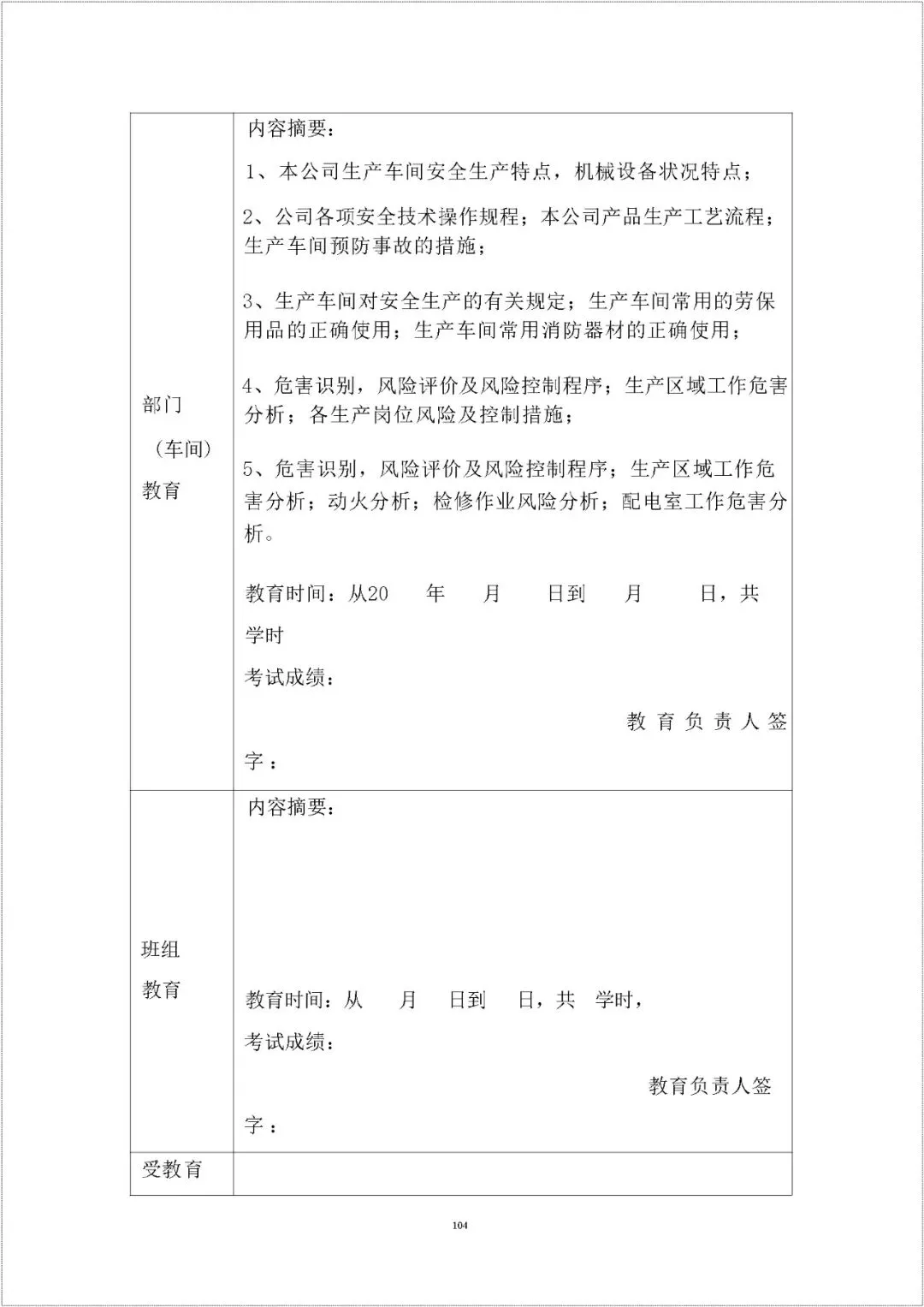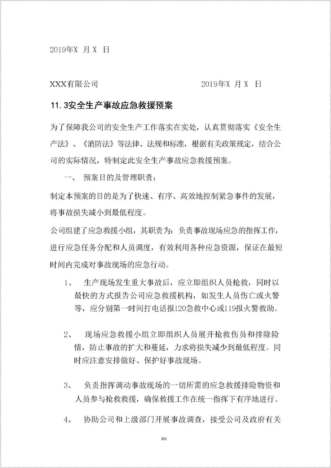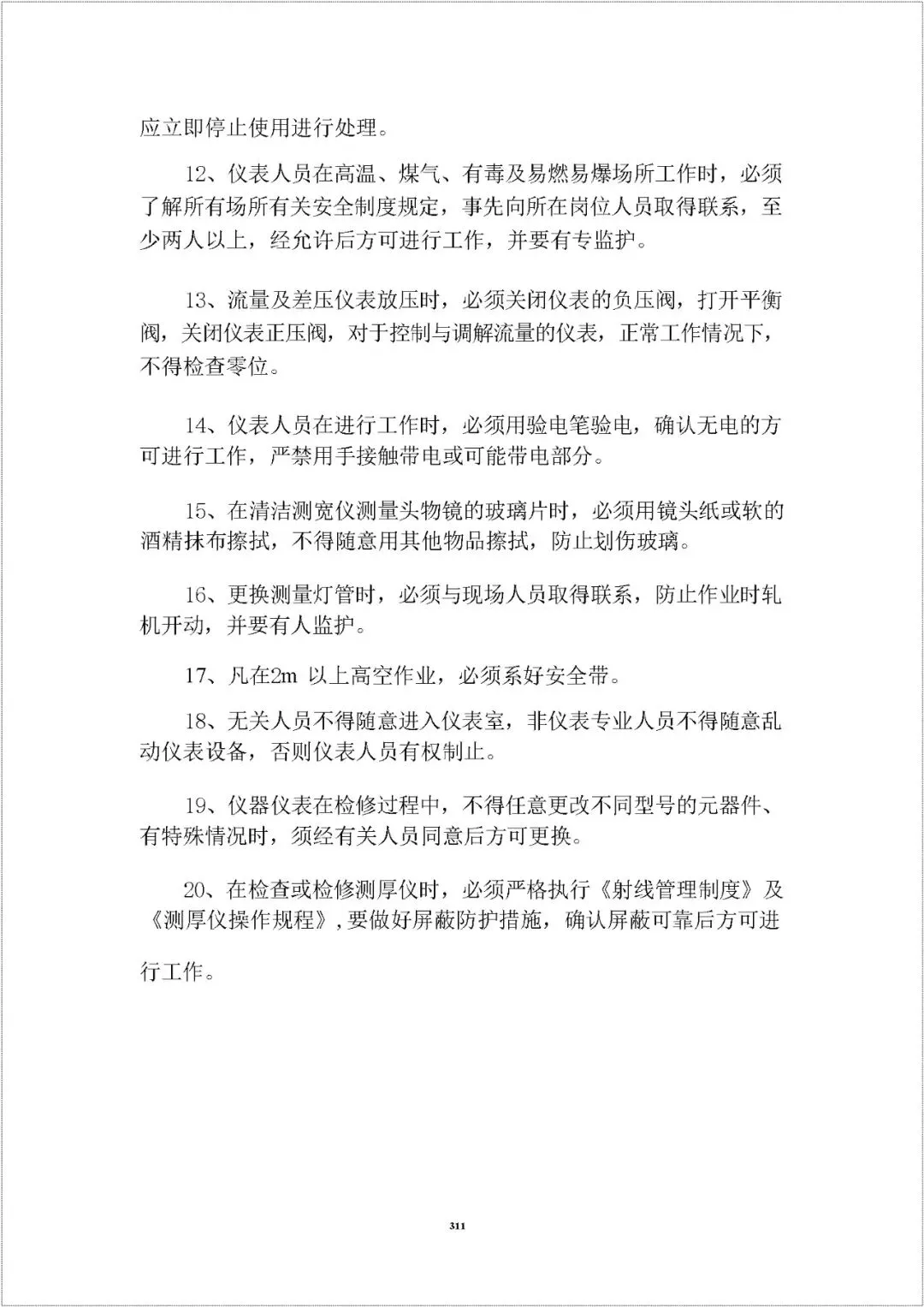 9.5 废钢车间安全操作规程 2949.5.1 废钢行车工安全操作规程 2949.5.2 废钢电工安全操作规程 2979.5.3 废钢钳工安全操作规程 2989.5.4 废钢验收工安全操作规程 3009.5.5 气割废钢作业的安全操作规程 3019.5.6 打包机岗位安全操作规程 3029.6 机修车间安全操作规程 3039.6.1 变电所电工安全操作规程 3039.6.2 电工安全操作规程 3069.6.3 气焊、气割工安全操作规程 3079.6.4 钳工安全操作规程 3089.6.5 维修电工安全操作规程 3099.6.6 仪表工安全操作规程 309第10章 职业健康 31210.1 职业健康管理制度 31210.2 劳动防护用品管理制度 316第11章 应急救援 31811.1 应急救援管理制度 31811.1.1 附表1:突发事件应急物资储备台帐 32411.1.2 附通知:成立安全生产应急管理机构的通知 32511.2 安全生产应急救援队伍管理制度 32611.2.1 附通知:成立安全生产应急救援队伍的通知 33111.3 安全生产事故应急救援预案 332