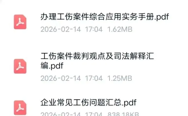 办理工伤案件实务大全(最新版),PDF电子版资料包,内容很全,包含工伤案件实务手册、裁判观点、司法解释、企业常见工伤问题汇总等,适合律师、法务、企业HR学习参考。
