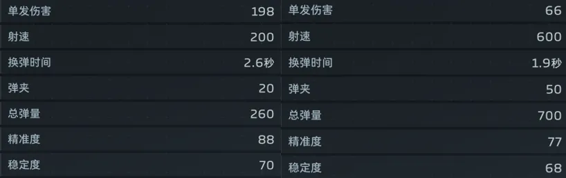 如果我提到死神猎手,各位会想到什么?是“这枪还有人用?鸡肋的不得了!”这类言论吗?很多玩家对他并不感冒,因为作为步枪射速很一般,弹夹容量也小,换弹时间还很长,我上面拉出了他和其他步枪的数据对比图,能看出来死神猎手的定位还是比较明显的——单发伤害高,但是射速慢,位于突击步枪和狙击枪之间,核心就是追求高伤害。