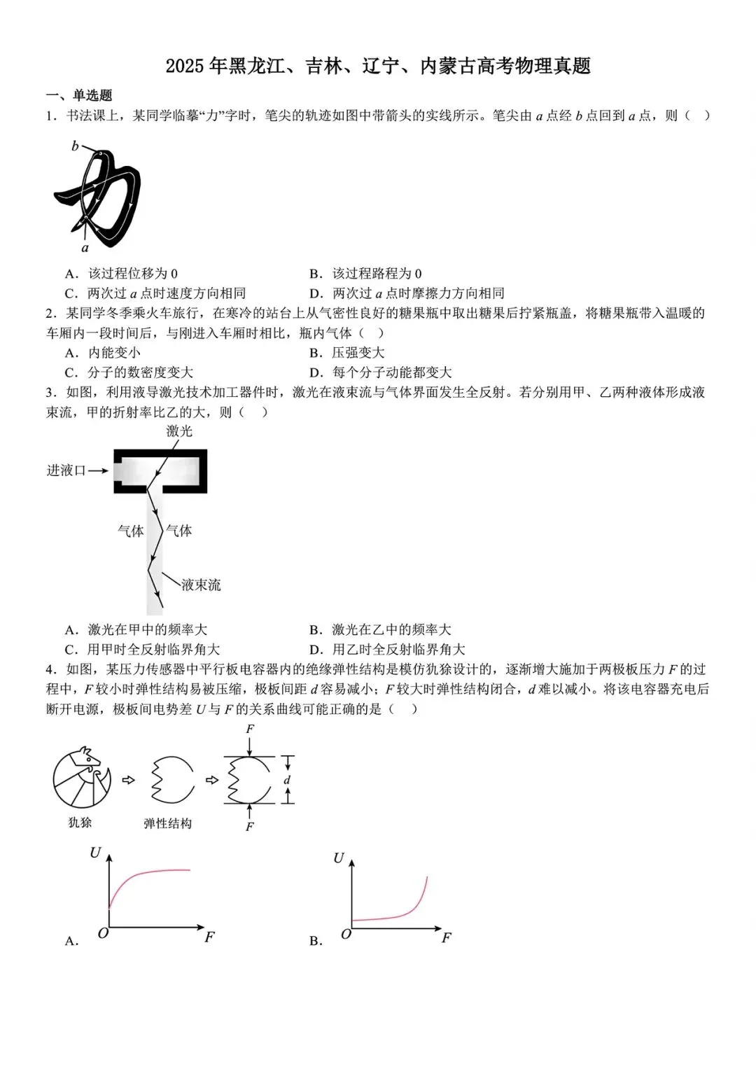 【高考试卷】2025年黑龙江高考真题试卷电子版-(全科目)高考真题答案解析