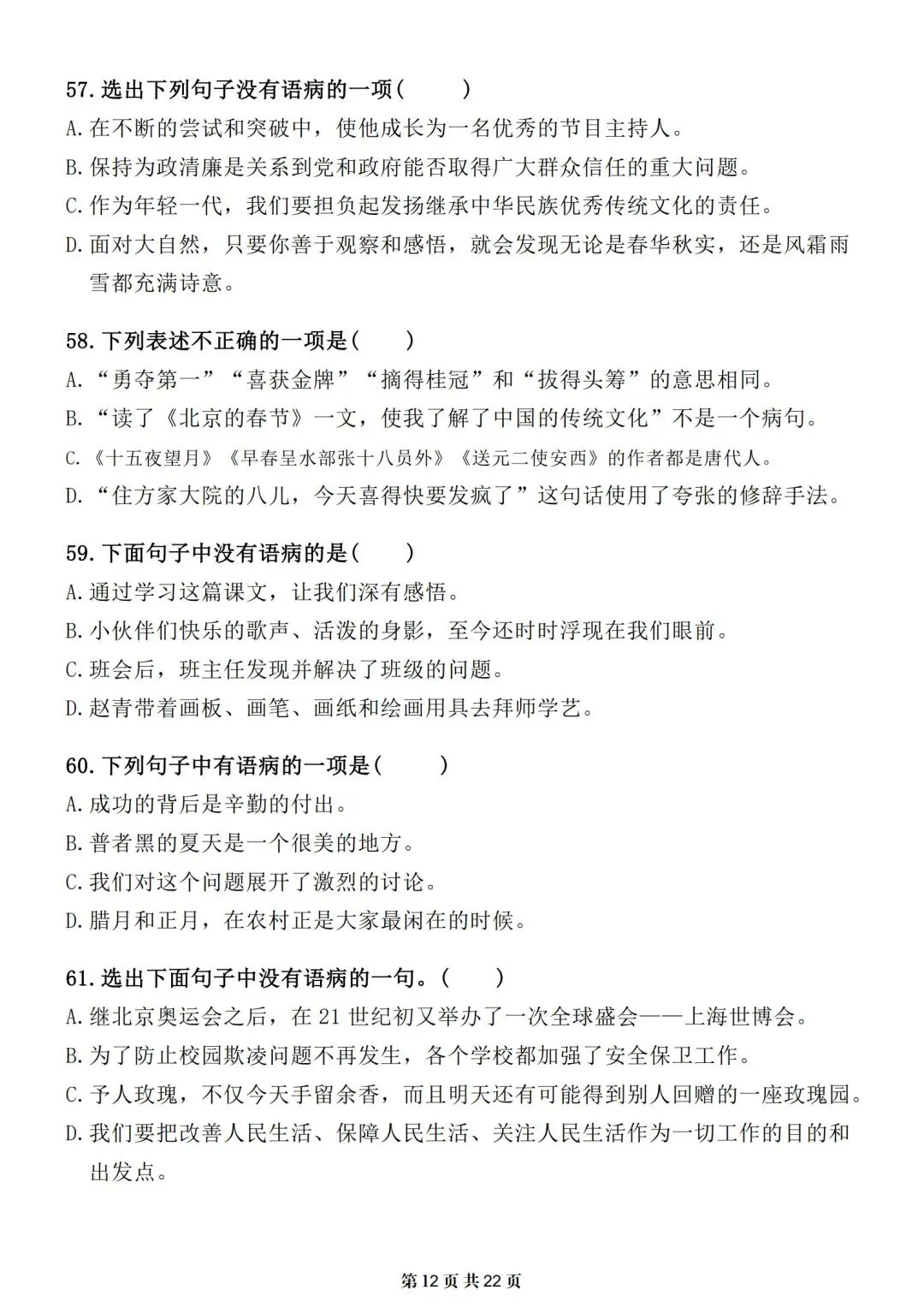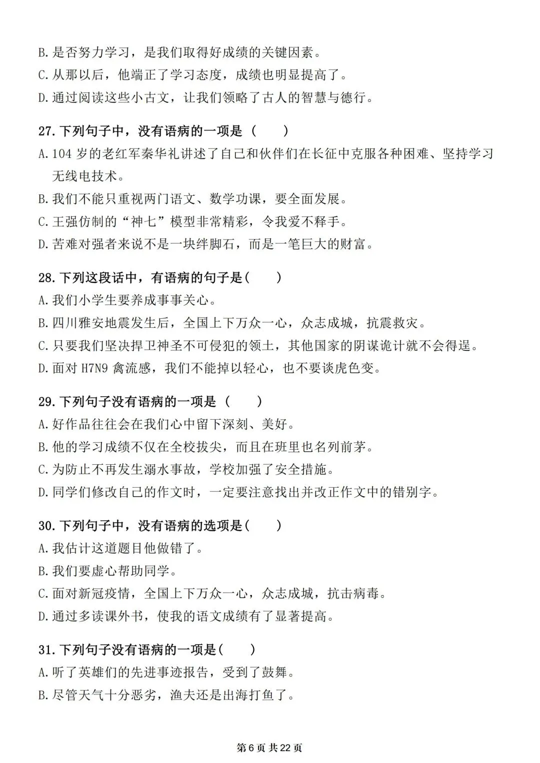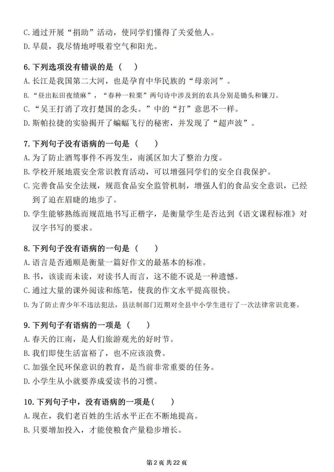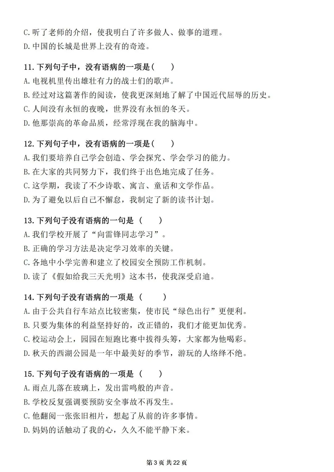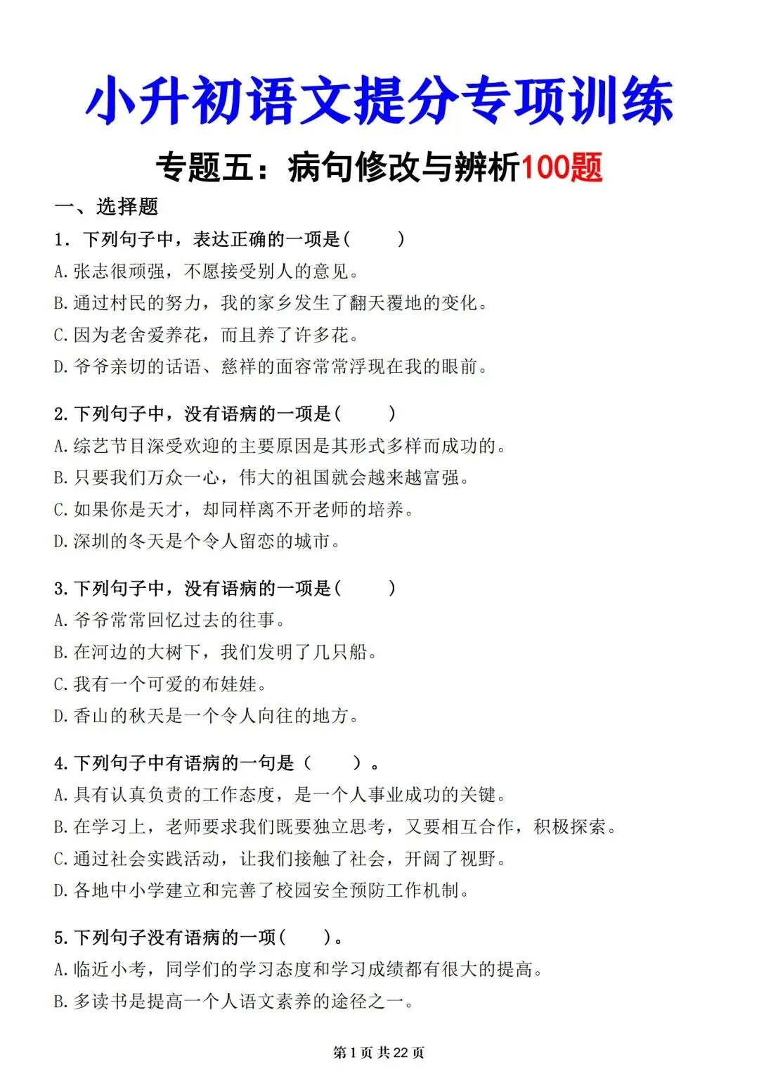 小升初-语文提分专项训练-修改病句专题|电子版可打印