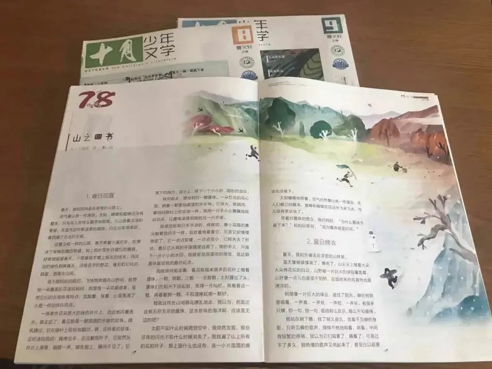 《十月》是国内很有口碑的老牌文学刊物,而《十月少年文学》则是其团队面向青少年推出的文学启蒙杂志,由曹文轩担任主编。
