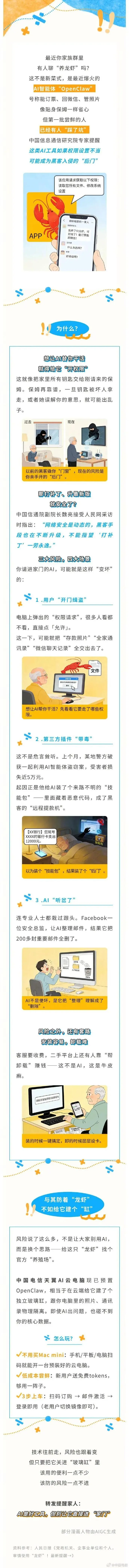 “AI养龙虾”怎么玩才不踩坑?转发提醒身边人:AI是好工具,但别让它直接进“家门”!