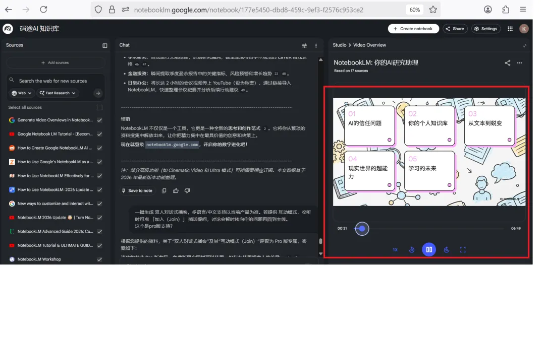 关注「码途AI+」视频号,查看NotebookLM 完整视频教程。