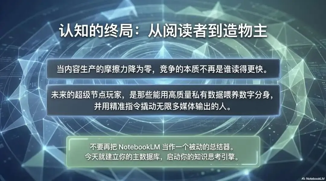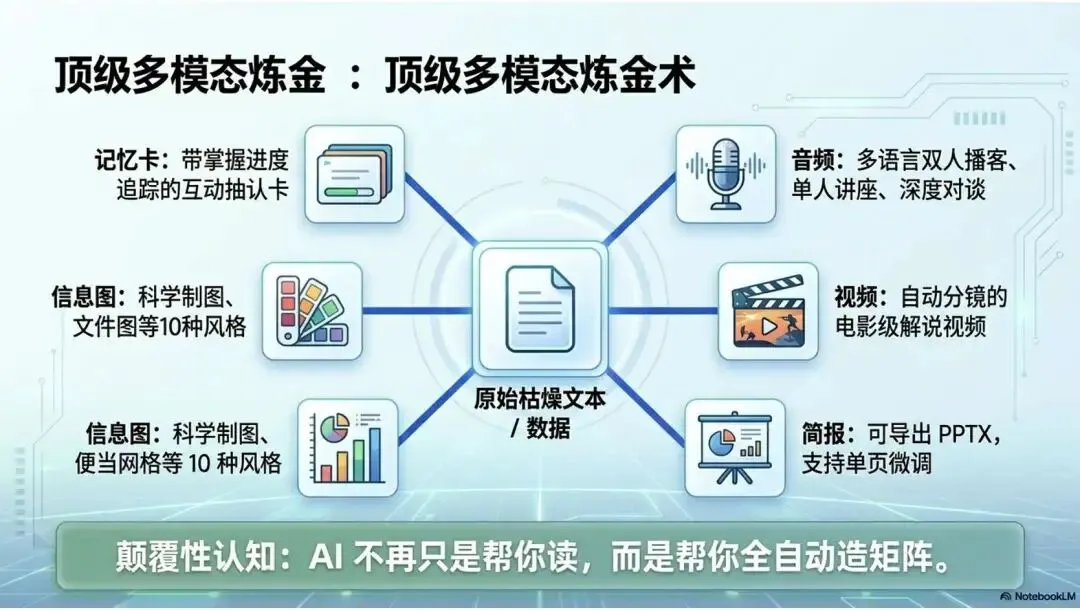 NotebookLM 不只是多一个 AI 工具,更像一种 「先收资料、再反复加工」 的工作方式:把检索与初稿从人身上卸一点下来,让你把精力放在判断、结构与创意上。