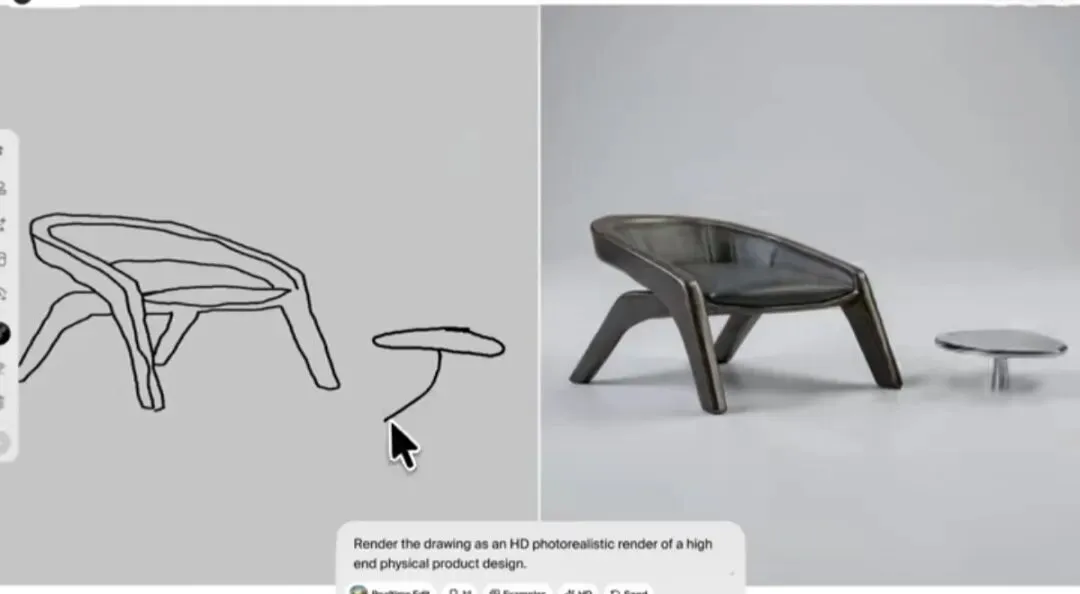 不止家具设计,它的应用场景广到惊人。给汉堡草稿添上“芝士”二字,AI立马生成芝士融化流淌的逼真画面,细节细腻到能看到拉丝质感;画个歪歪扭扭的小房子,转眼就变成光影通透、充满氛围感的建筑效果图;甚至连角色设计、动态参考都能搞定,普通摄像头捕捉动作,就能生成对应的3D模型,彻底打破传统设计的效率壁垒。