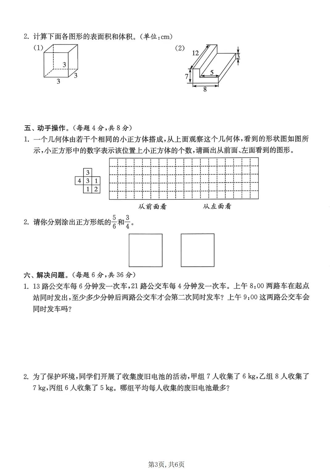 数学试卷部分展示