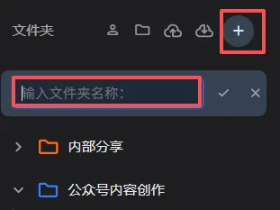 只需要点击【文件夹】最右侧的+号,就会跳出一个框,让你去输入文件夹名称。