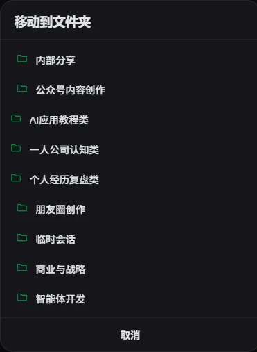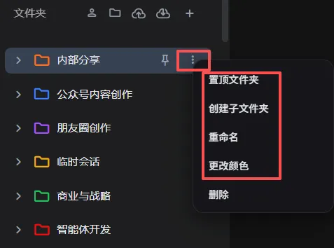 比如还可以建一个“客户交付”文件夹,存放不同项目的对话。