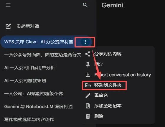 比如你可以专门建一个“公众号内容创作的”文件夹,专门放用Gemini辅助写推文的对话。