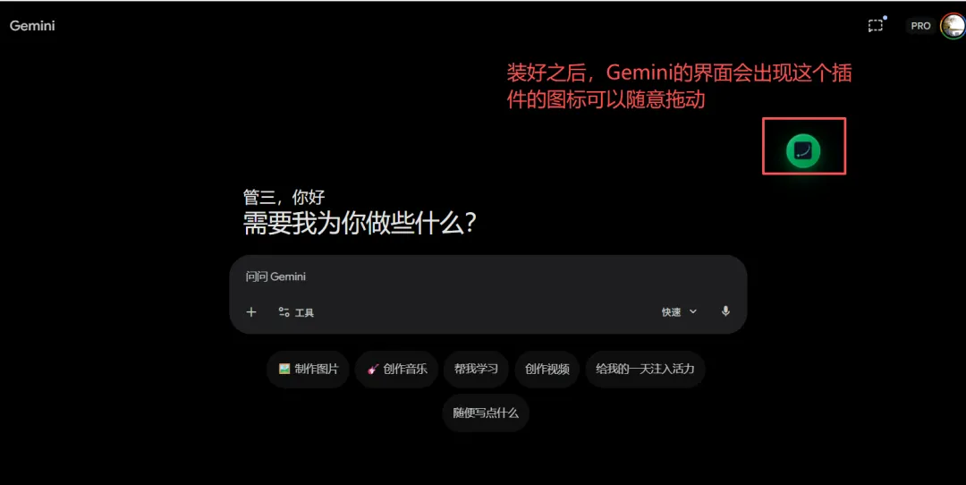 安装好之后,Gemini的界面就会出现这个插件的图标,这个图标可以随意拖动。