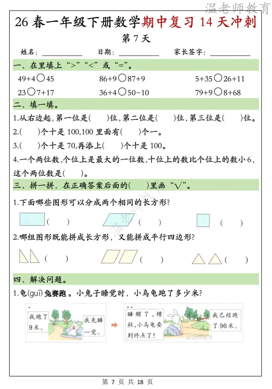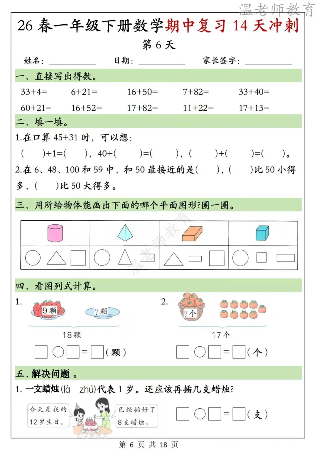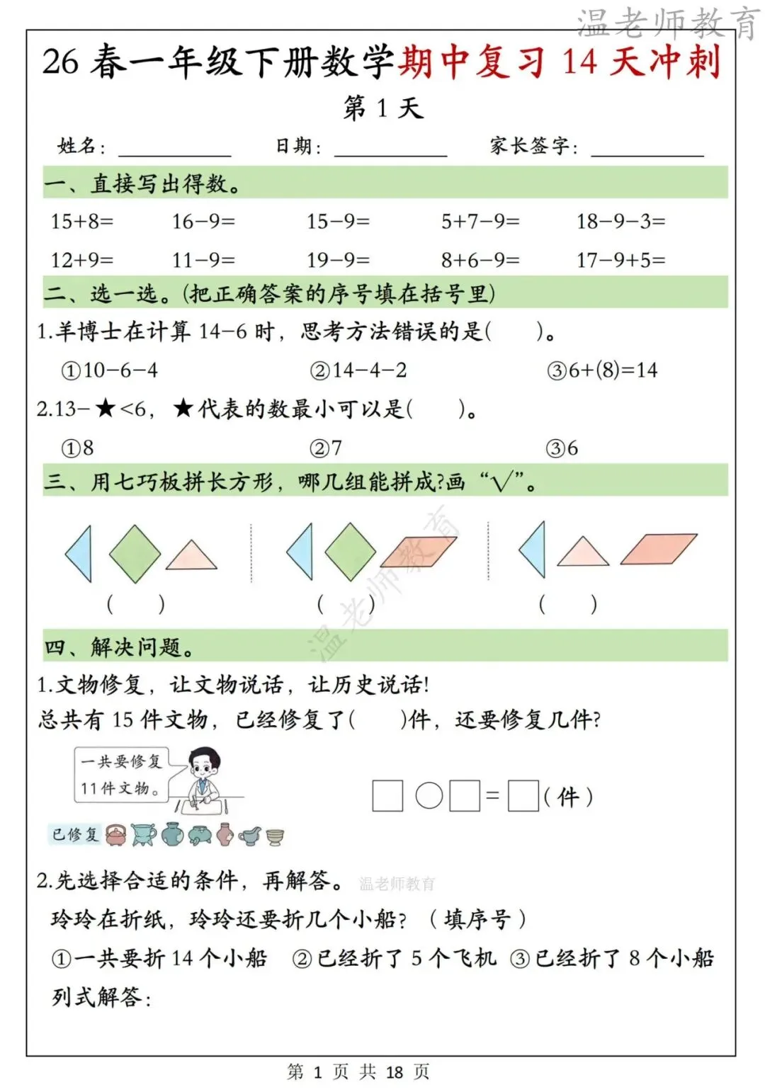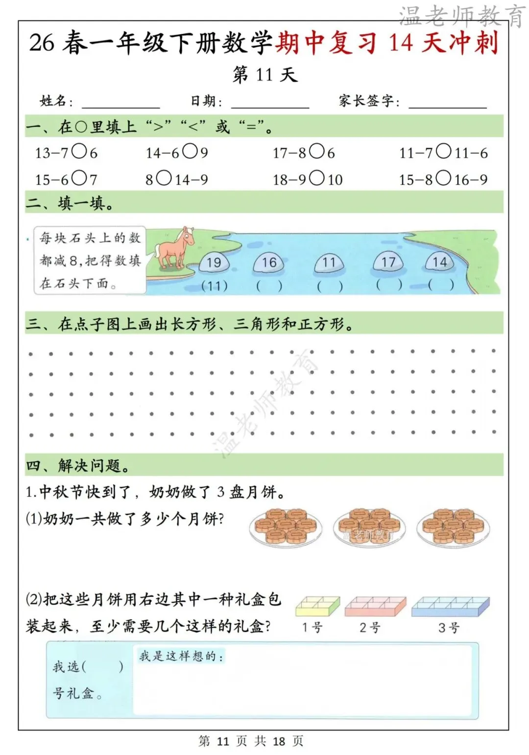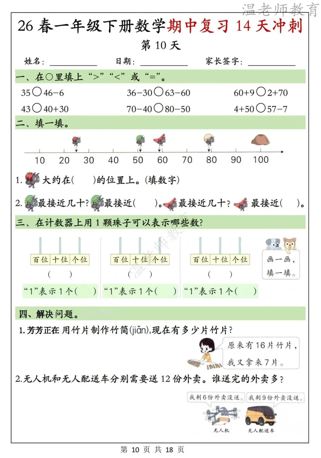 26春一年级下册数学期中复习14天冲刺,电子版可打印