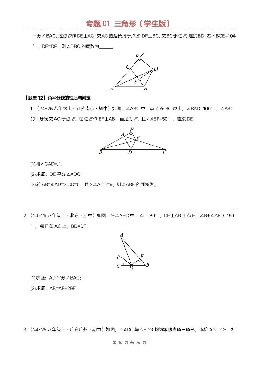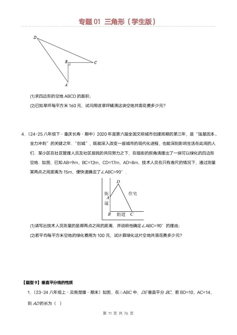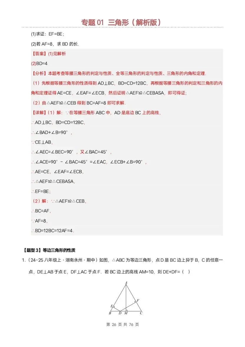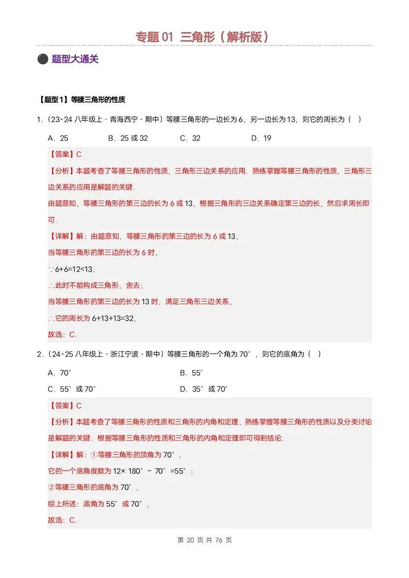 今日分享26新八年级下册北师版期中专项·三角形·13大题型(含答案)完整电子版可打印!所有资料均为高清电子版,排版规整适配打印,不用费心整理,直接打印就能用。精准击破学习难点,帮孩子夯实基础、吃透考点,稳步提升学习效率!