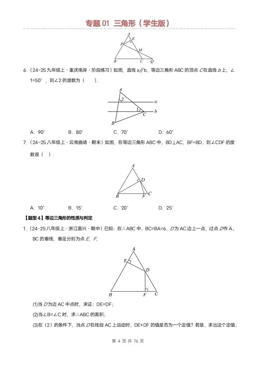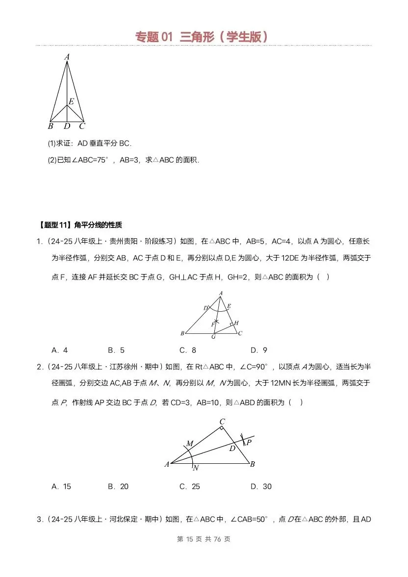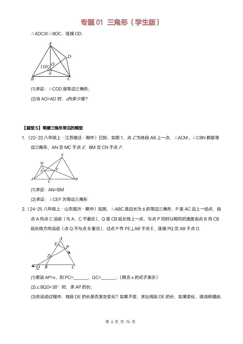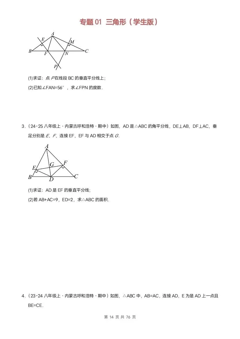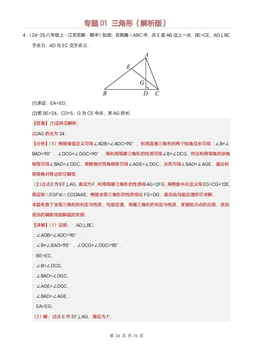 今日分享26新八年级下册北师版期中专项·三角形·13大题型(含答案)完整电子版可打印!所有资料均为高清电子版,排版规整适配打印,不用费心整理,直接打印就能用。精准击破学习难点,帮孩子夯实基础、吃透考点,稳步提升学习效率!