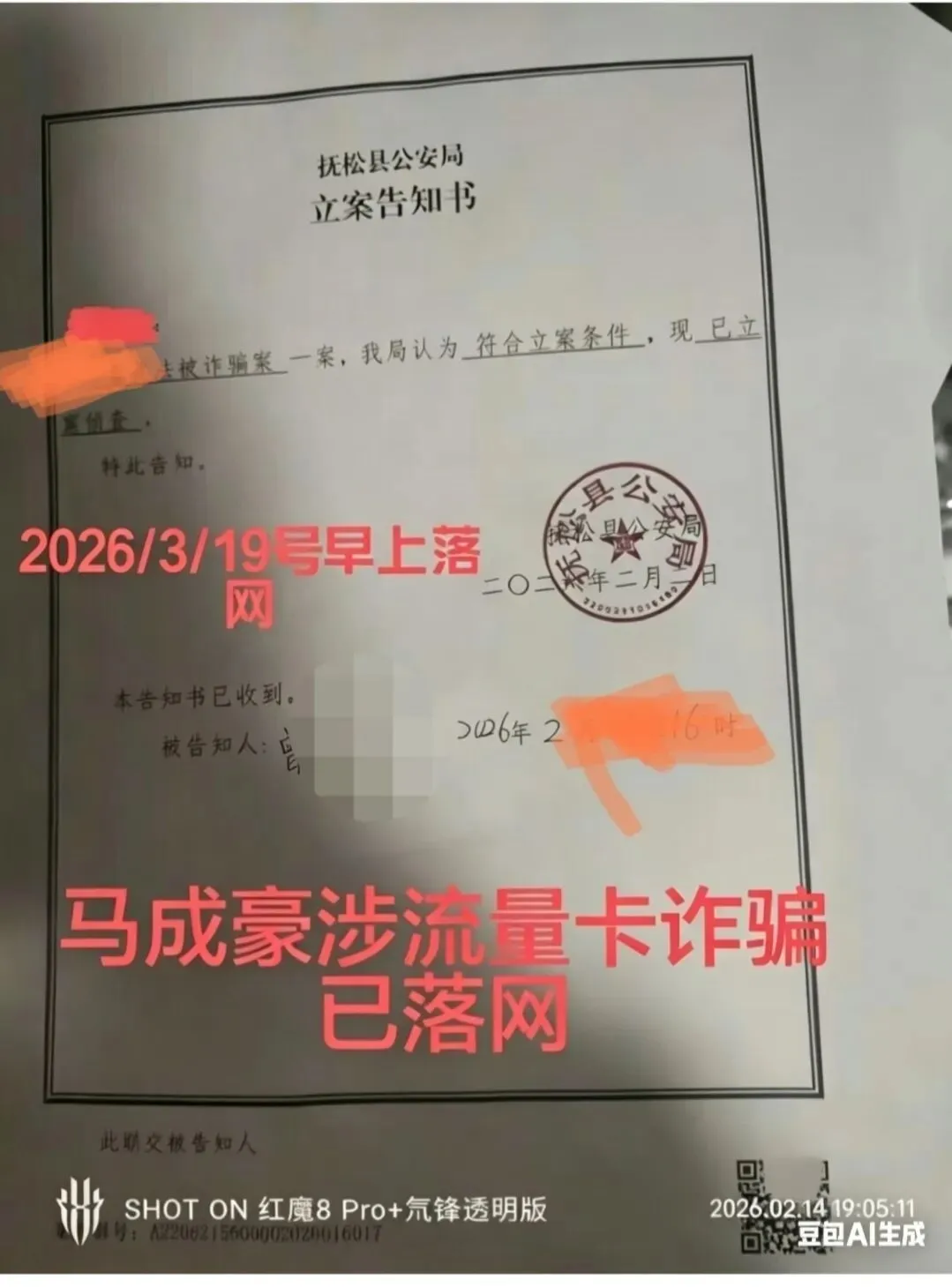 近日,有网友向我们提供了相关线索材料,其中包含一份《立案告知书》及相关聊天记录,涉及流量卡领域诈骗相关情况。