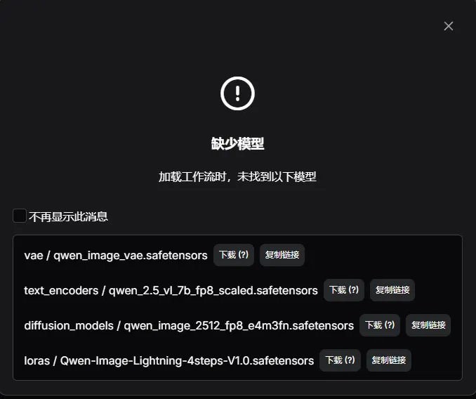 - •此时大概率会提示缺少模型,例如下图,此时可以选择下载,但通常需要加速器