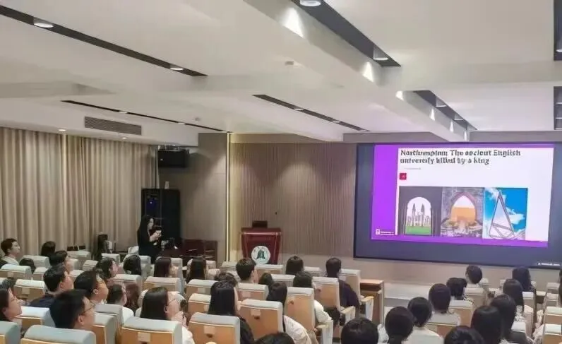 为深化中英教育合作,助力学生把握优质留学资源,2026年4月8日下午湖北大学知行学院科研与合作发展处在学术报告厅302举办“英国北安普顿大学2026年交流生项目”专题宣讲会。活动特邀英国北安普顿大学国际事务处李娜老师担任主讲,吸引来自外国语学院、经管学院、计算机学院等院系100余名学生参与。
