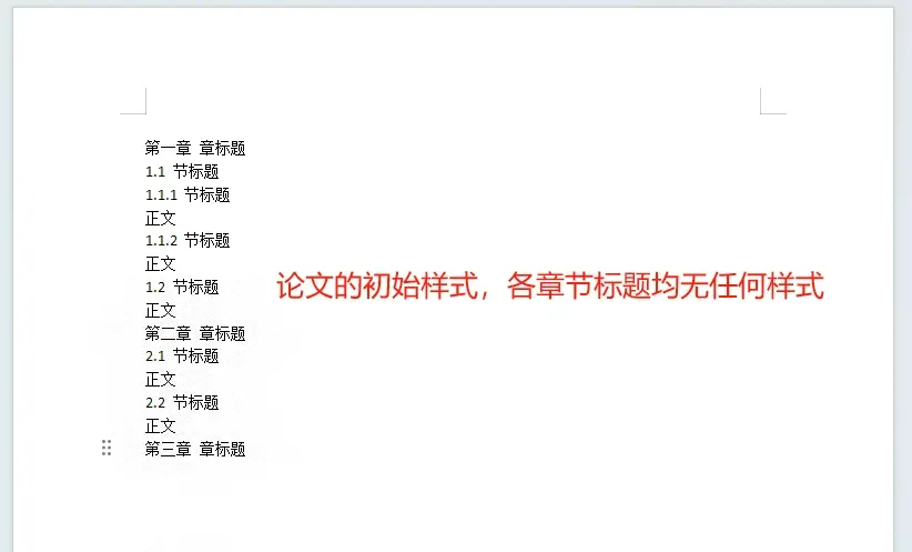 假设我们的论文尚未设置任何样式,👉如下图