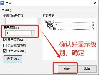 ②确认好显示级别,而后点击确定(👉图2)