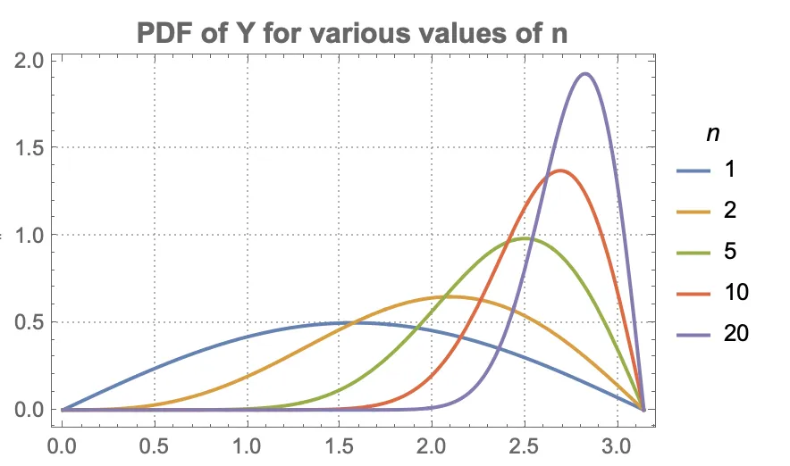 Each of the independent random variables has the probability density function for (and zero otherwise). Let be the random variable whose value is the maximum of the values of .