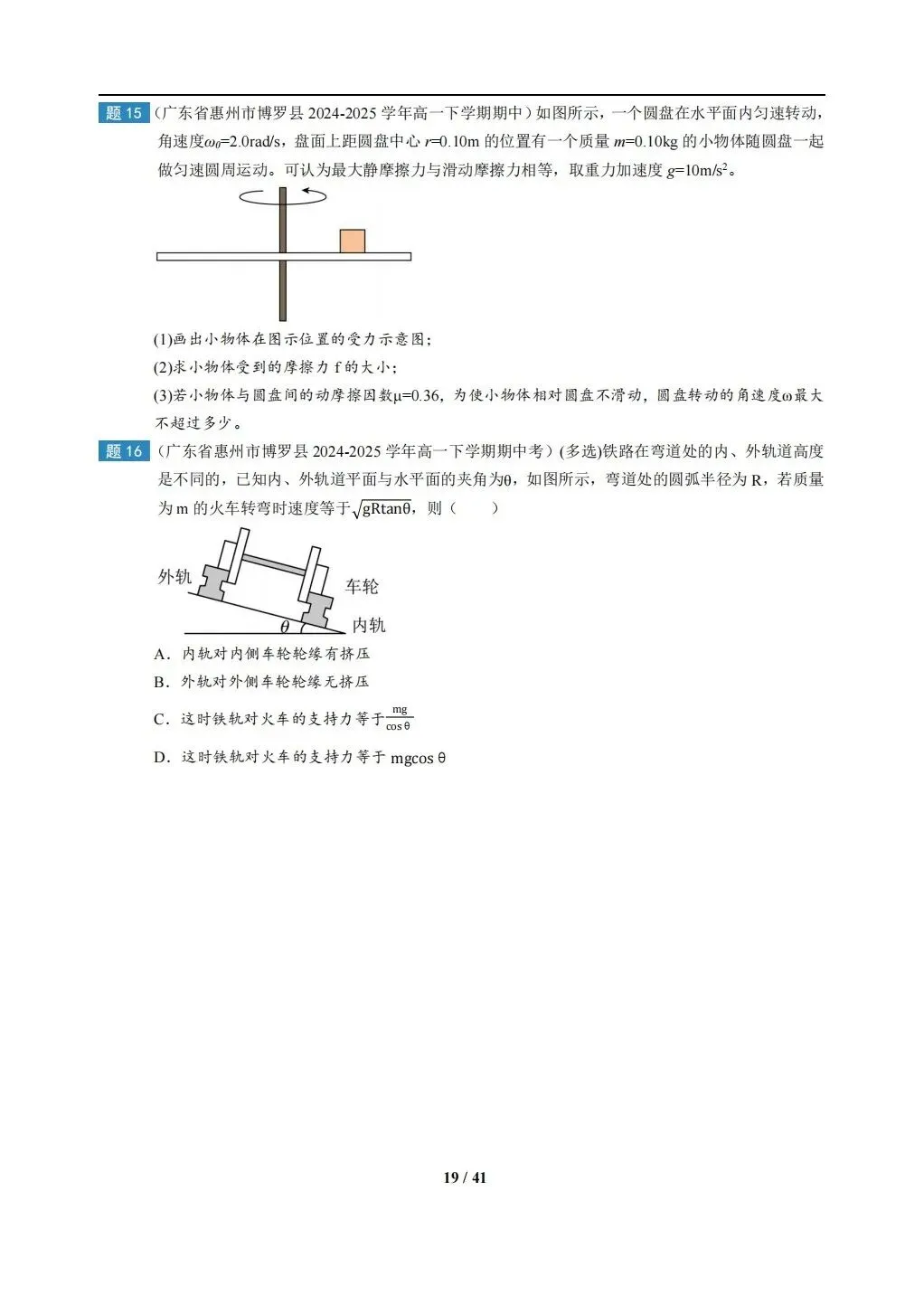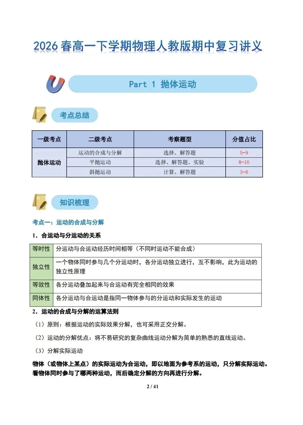 2026新版高一下册必修二物理(人教A版)期中复习讲义,电子版可打印下载!