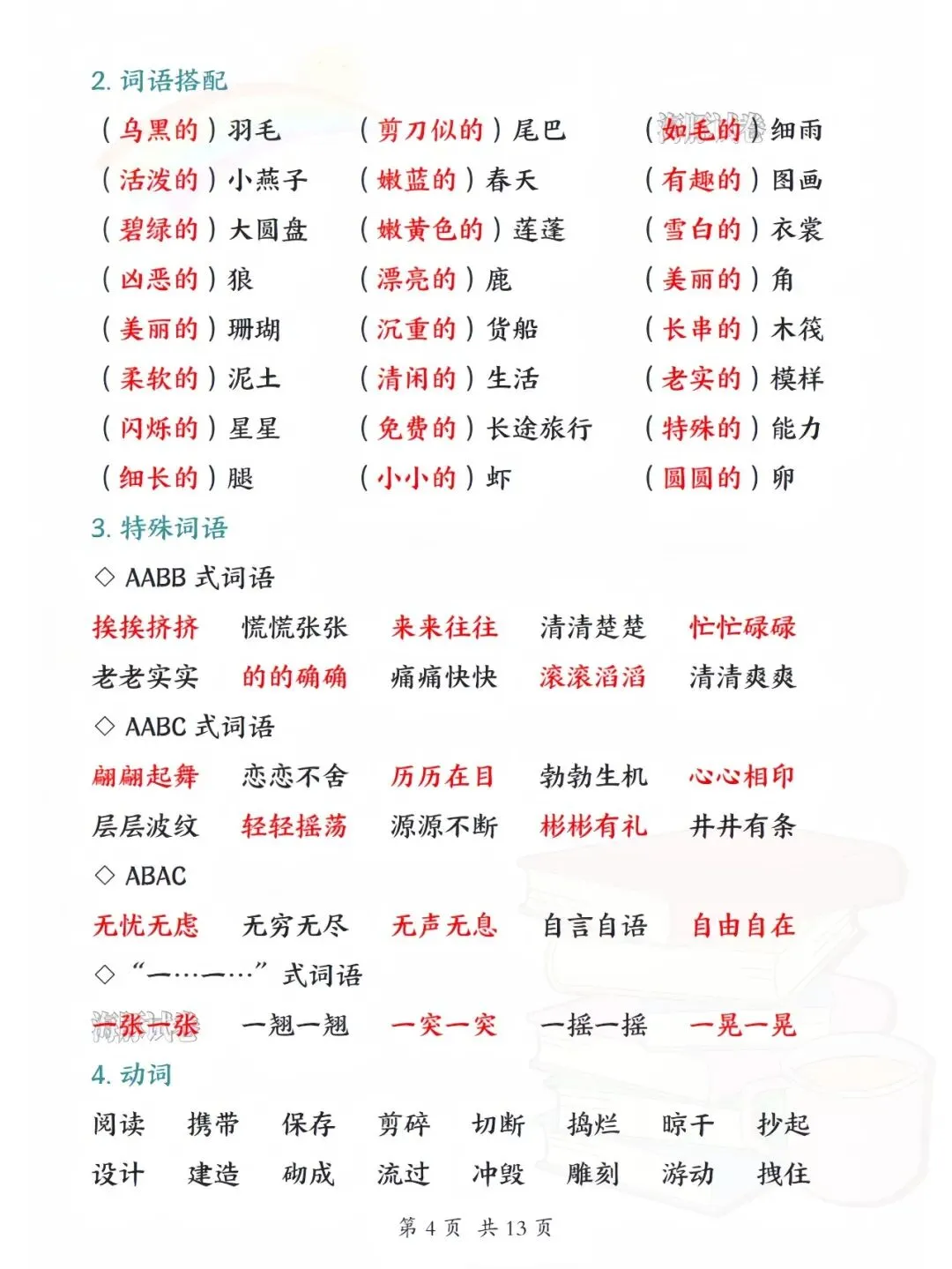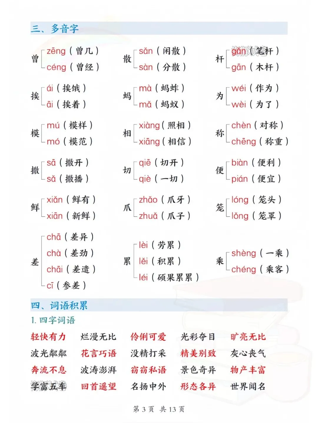 新版三年级下册语文《期中复习知识归纳》电子版可打印