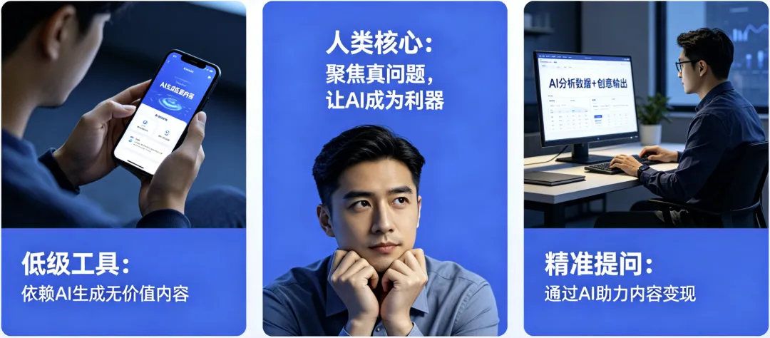 说到底,无论AI进化到什么程度,它永远只是一台极致的“解题机器”。它能帮你写文案、剪视频、做方案,但没法替你决定文案写给谁看、视频为谁而拍、方案要攻克什么商业壁垒。机器负责解答,人类负责发问。