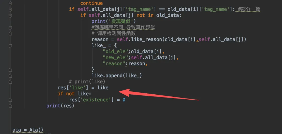 这里发现,其实已经实现了,并且结果都为AI可以看懂的清晰表达。like一直是空列表,当找到疑似后就记录了下来。