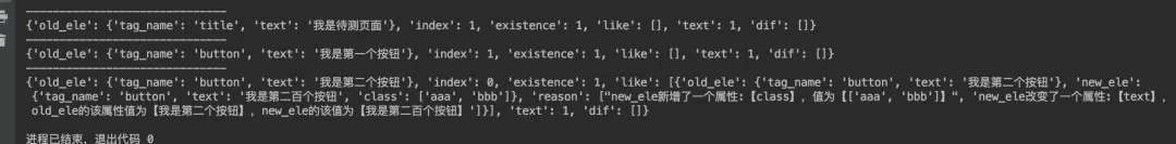 接下来就是,如果全都找完了,也没有个疑似的出现,那么就可以断定该元素无了,而针对该元素的最终结果res中,也要体现疑似的元素也就是like列表。到这里就简单了,我们只需要讨论下最终结果的收纳问题。我们把这个全页面断言功能进行记录到报告上的时候,应该把每一个断言的元素都记录上。但现在的res中,没法提现。所以我们要给res加上断言的old_ele是哪个。
