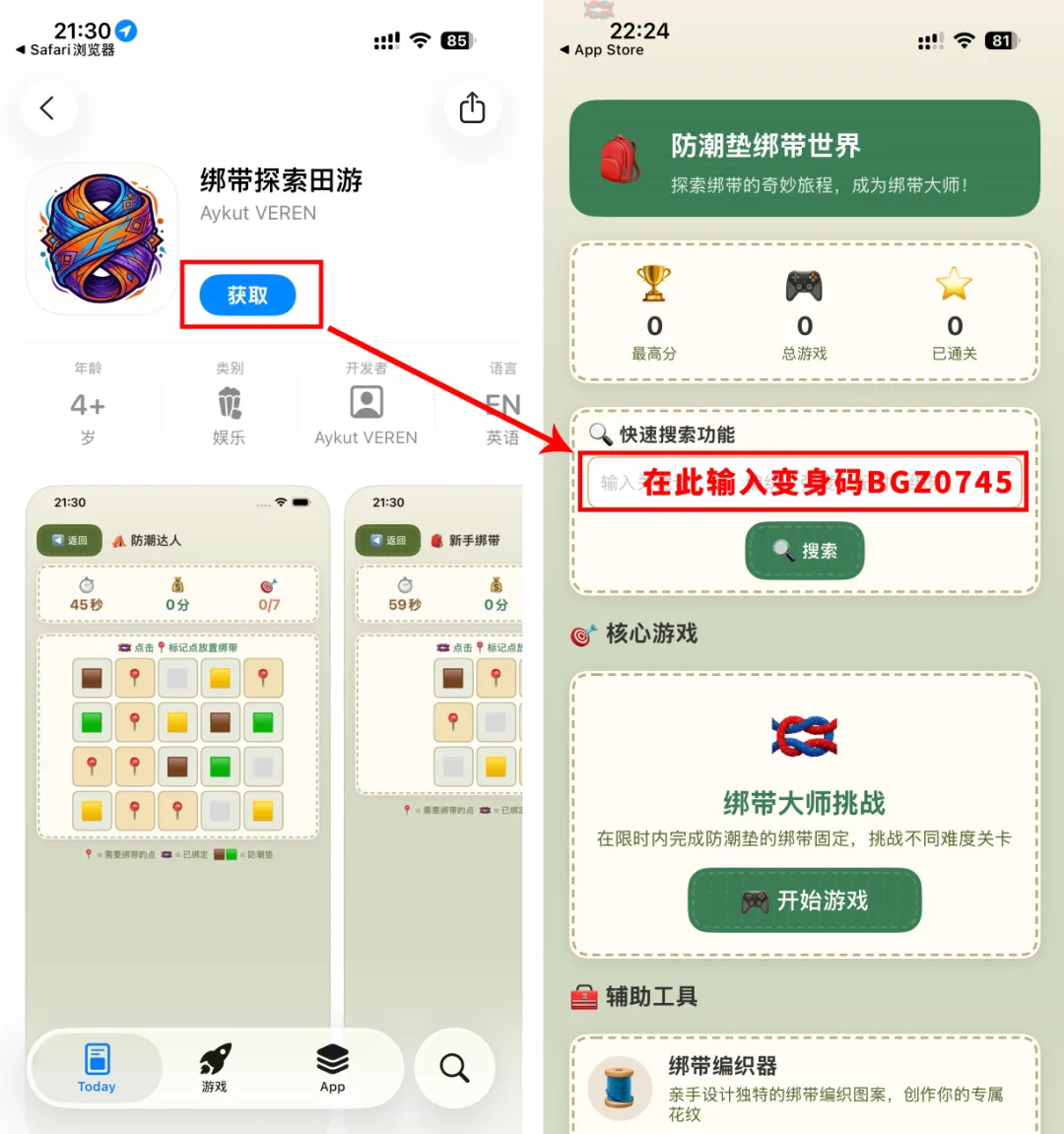由于iOS端是伪装上架App Store的,所以需要输入代码变身(如下图),下载安装打开APP后,点搜索框,粘贴/输入变身码:BGZ0745, 然后允许网络权限、等待几秒即可变身成功。(不会的+QQ群:906257202)