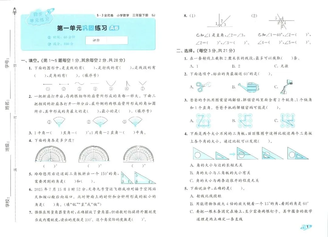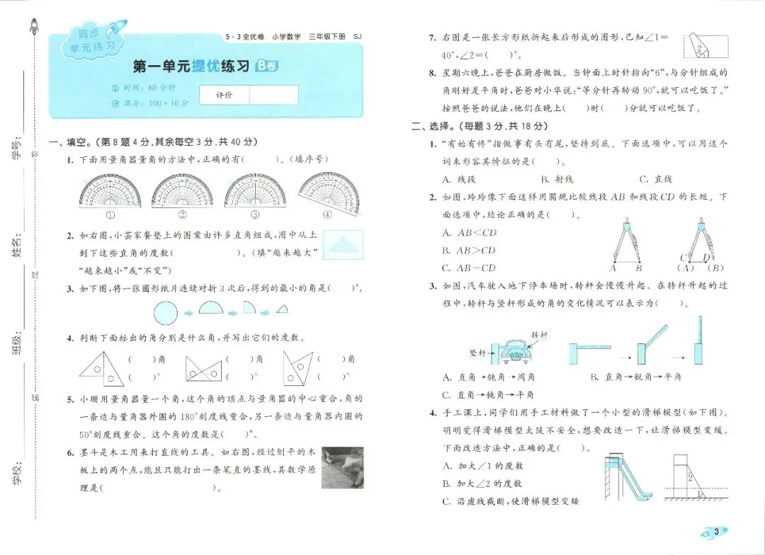 苏教版数学三年级下册《53全优卷》(可下载)