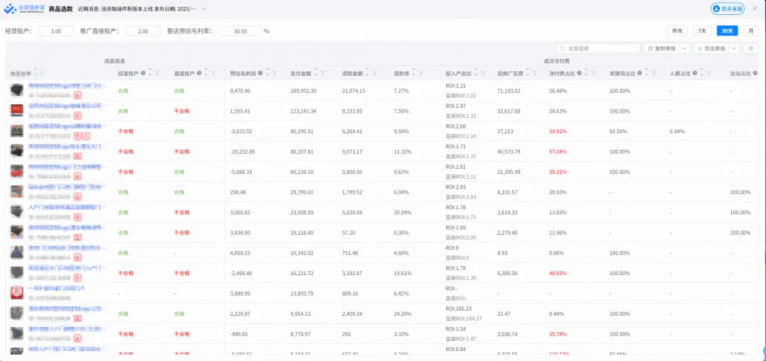 支持经营ROI、直接推广ROI、毛利润计算,无需手动核算,一键就能筛选优质款,轻松锁定高收益潜力品!