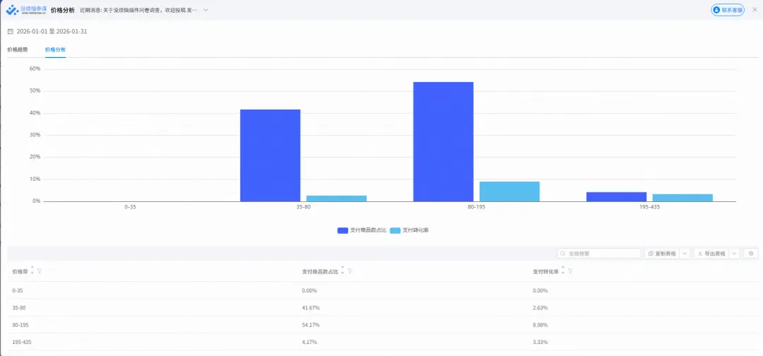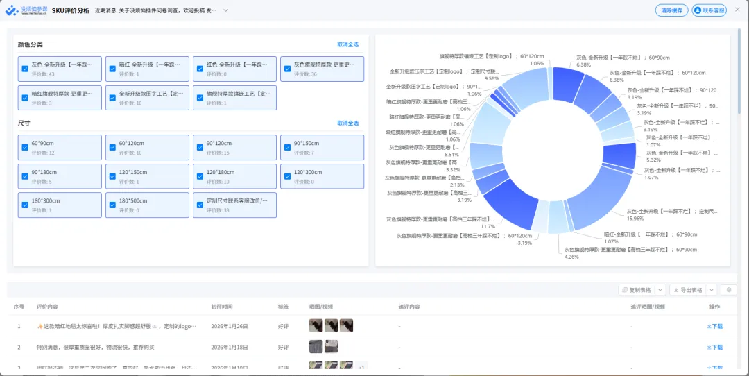 包括SKU评价分析、评价关键词分析、市场分析,支持价格带、类目筛选,分析报告直观可见,决策更精准。