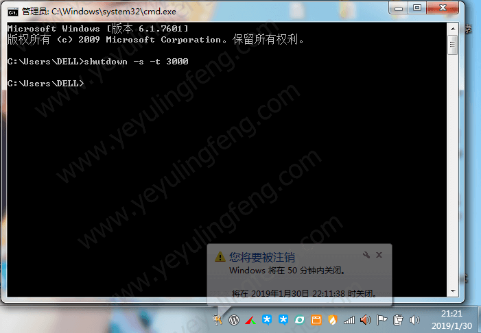 大家输入时注意空格,输入完毕后直接回车就能立即生效了。对于上述代码这里老夜简单的为大家翻译下,shutdown就是引用Shutdown.exe程序,-s是关机指令,-t是关机倒计时默认单位是秒,因此上面代码意思就是3000秒(50分钟)后将会自动关机。