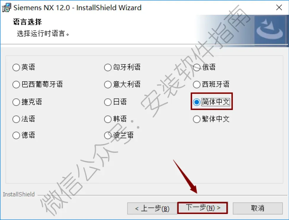 38.选择第11步中的NX12.0文件夹,点击“下一步”。
