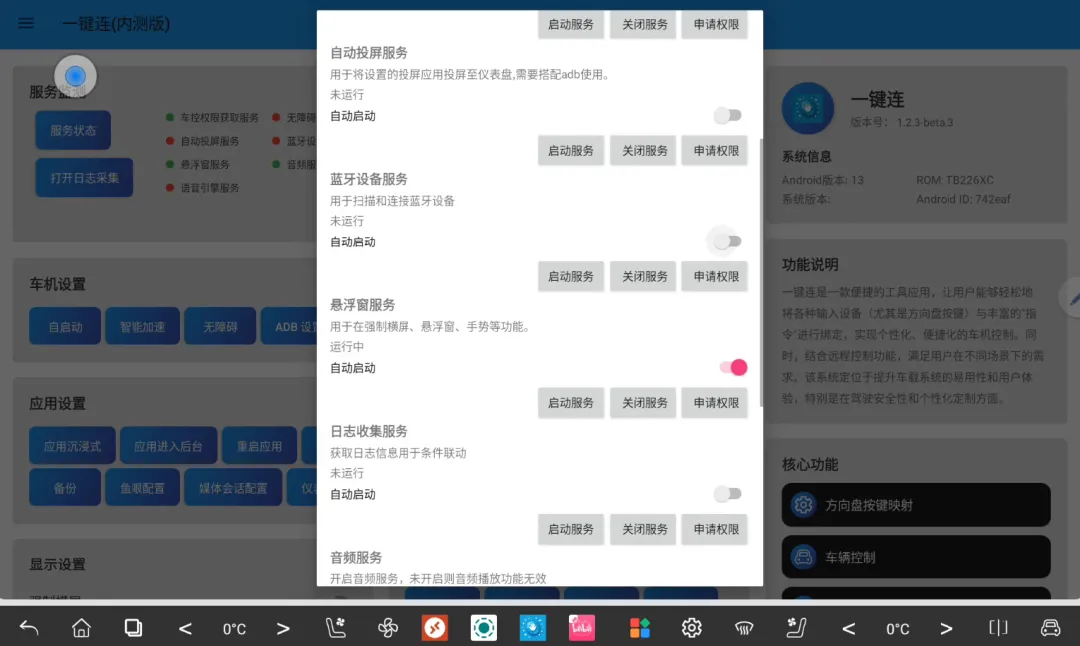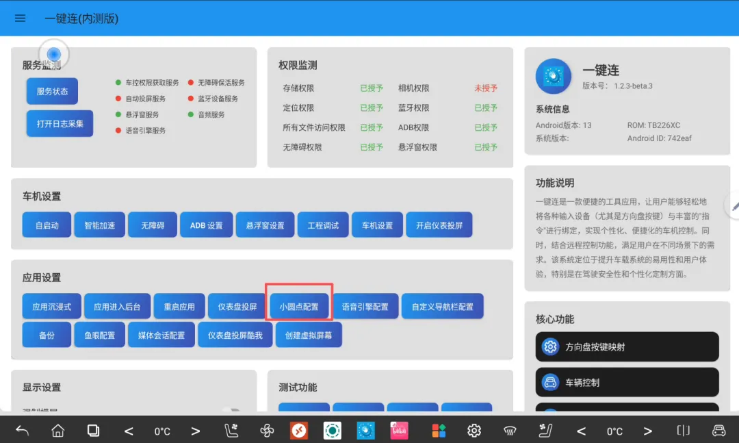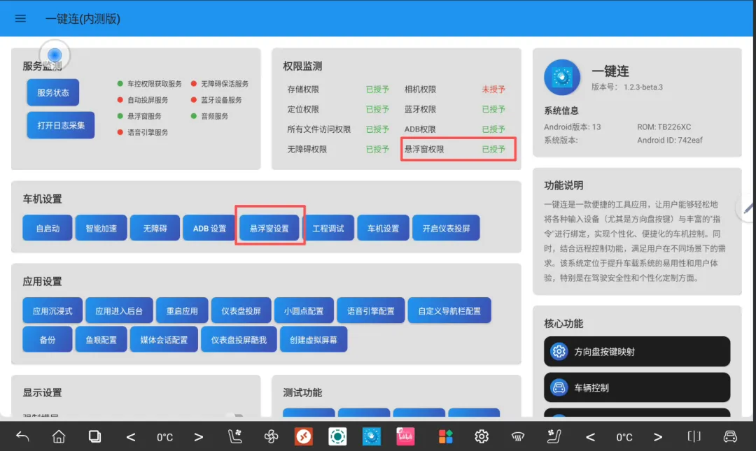 功能位置:系统配置/权限监测/悬浮窗权限 或者 系统配置/车机设置/悬浮窗设置;