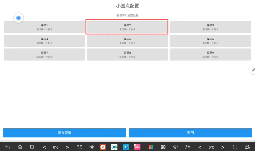 单击“小圆点配置”,进入“小圆点配置界面”,点击菜单配置需要执行的指令,点击“保存配置”后完成刷新。