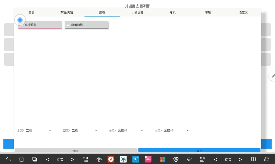 在车机屏幕上面点击“小圆点”,会展开一个指令面板,点击菜单完成指令调用。