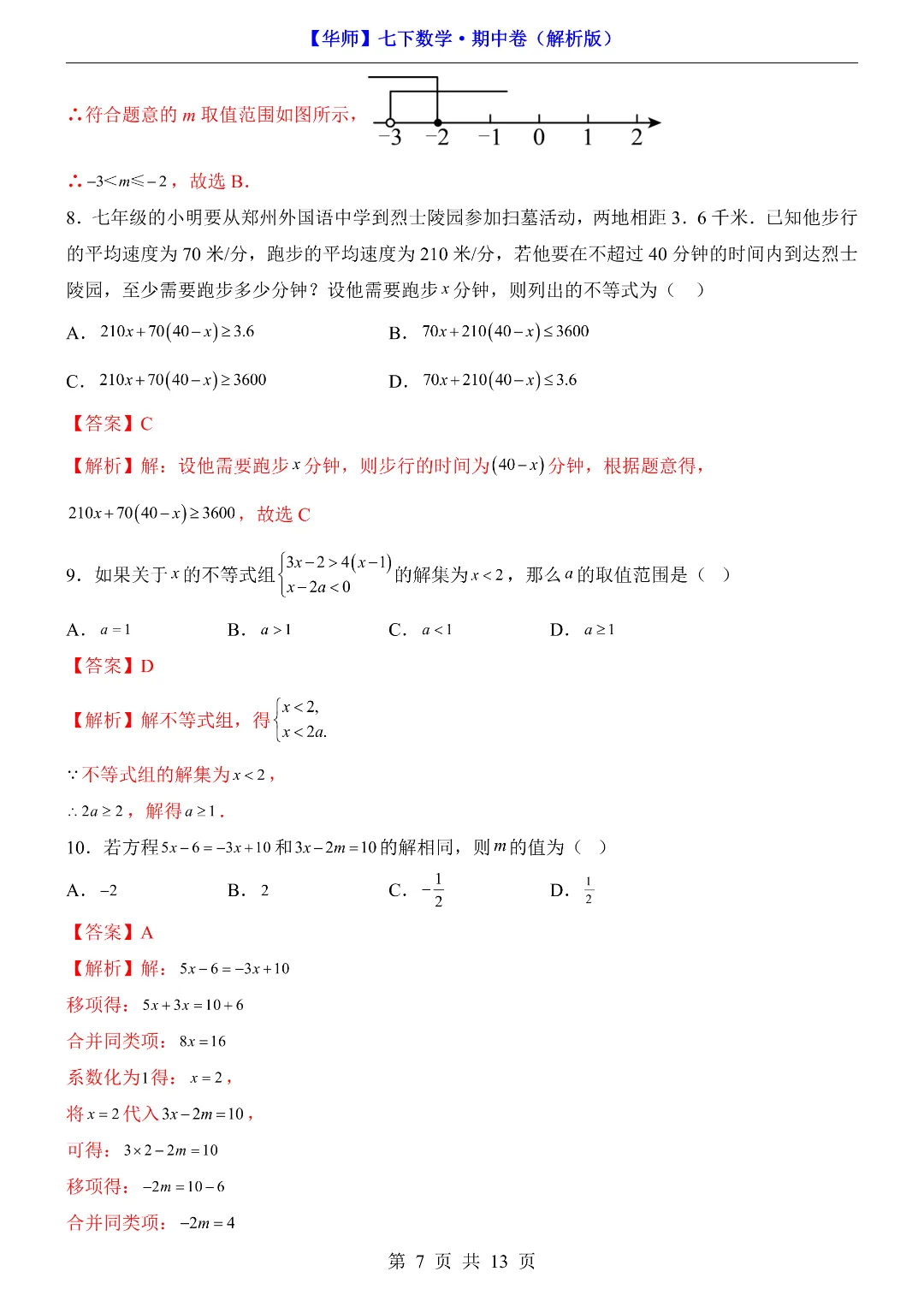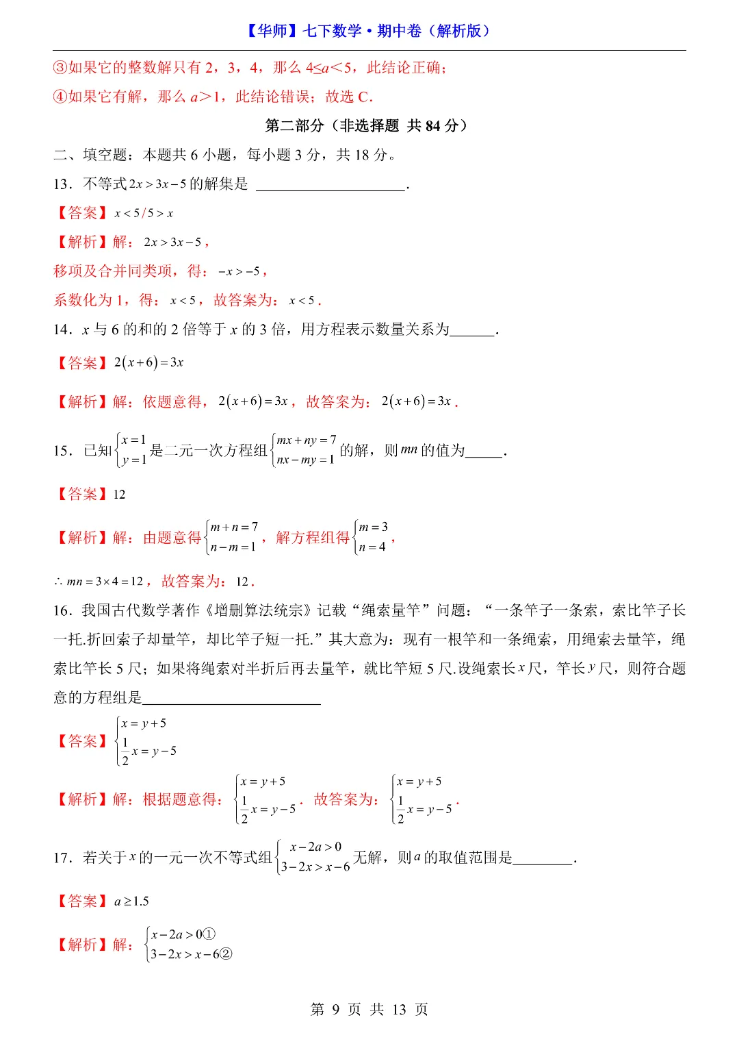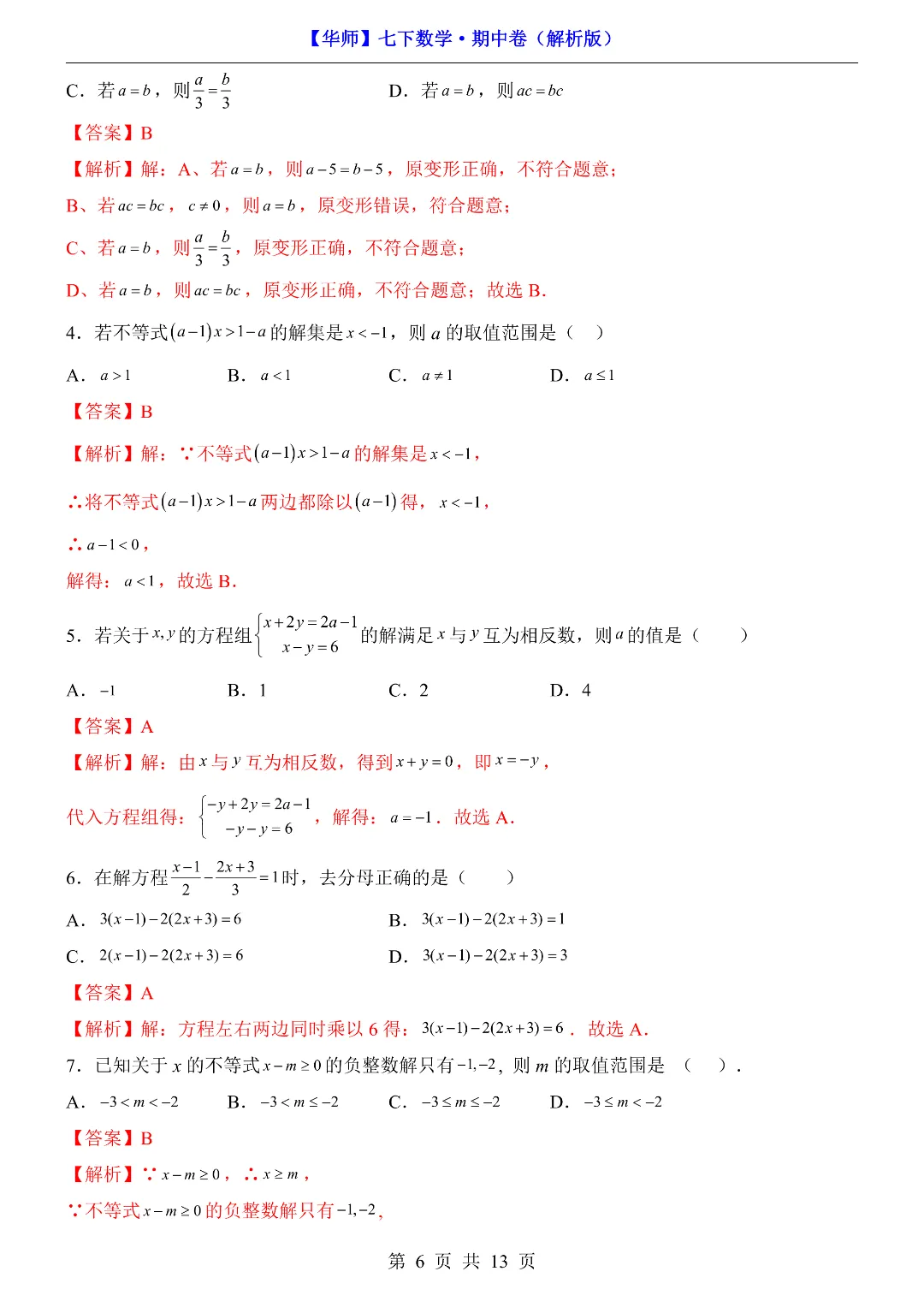 今天给家长们分享的是:26年春新七年级下册华东师大版数学《期中考试测试卷》附答案解析‖高清电子版可打印